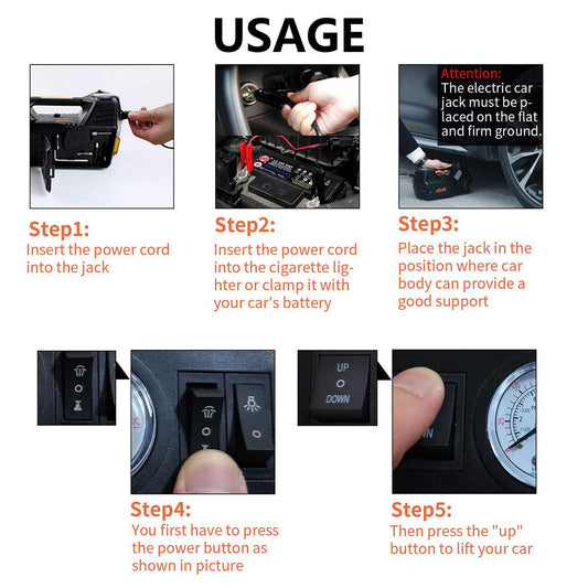 ROGTZ Electric Hydraulic Car Jack Kit 5 Ton 12V Portable Lift Range 17.7 Inch with Impact Wrench and Tire Inflator Pump for SUV Sedan Truck Car Repair Floor Jack for Vehicle Tire Change with LED Light