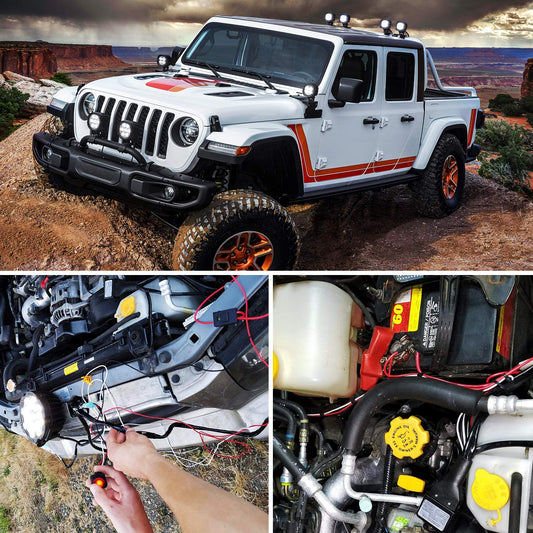 Nilight - ZH002 20Inch 126W Spot Flood Combo Off Road Led Light Bar 2PCS 18w 4Inch LED Pods With 16AWG Wiring Harness Kit-3 Lead For Tractor, 2 Years Warranty