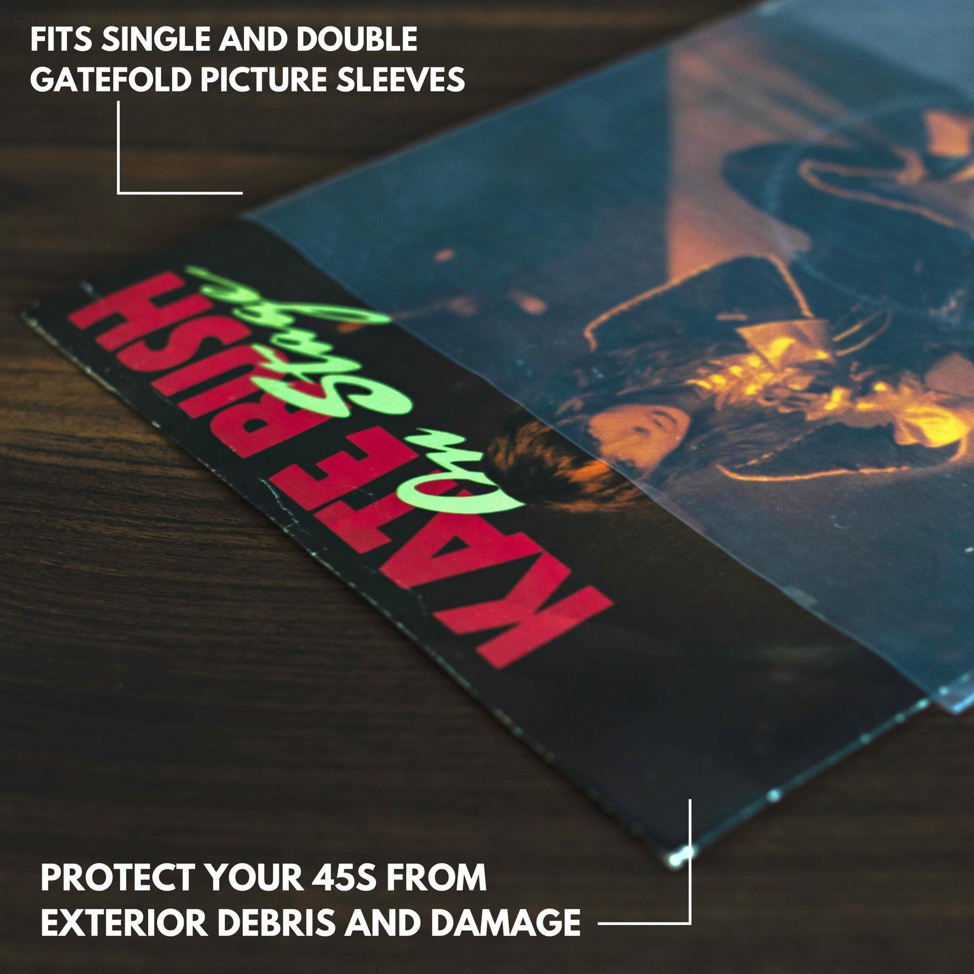 • πŸ“ Snug 7.5" x 7.5" Fit – Designed for 45s, gatefolds, and picture sleeves. These sleeves won’t crinkle or crush easily and 45s slide in smoothly.