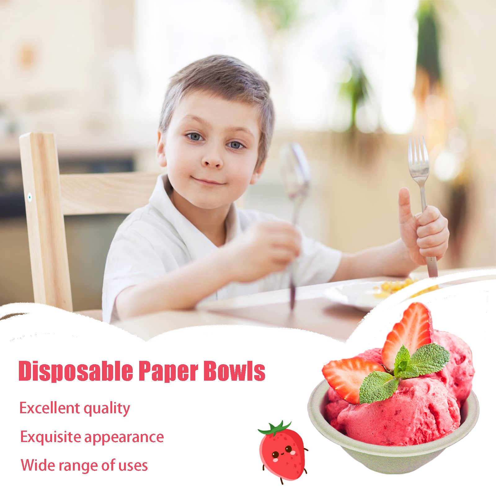 100 Pack 8oz Compostable Paper Bowls,Heavy-Duty Disposable Natural Bagasse Bowls,Biodegradable Soup Bowls,Eco-Friendly,Heat Resistant,for Ice Cream,Salad,Soup,Snack,Dessert,Pasta,Hot or Cold Use