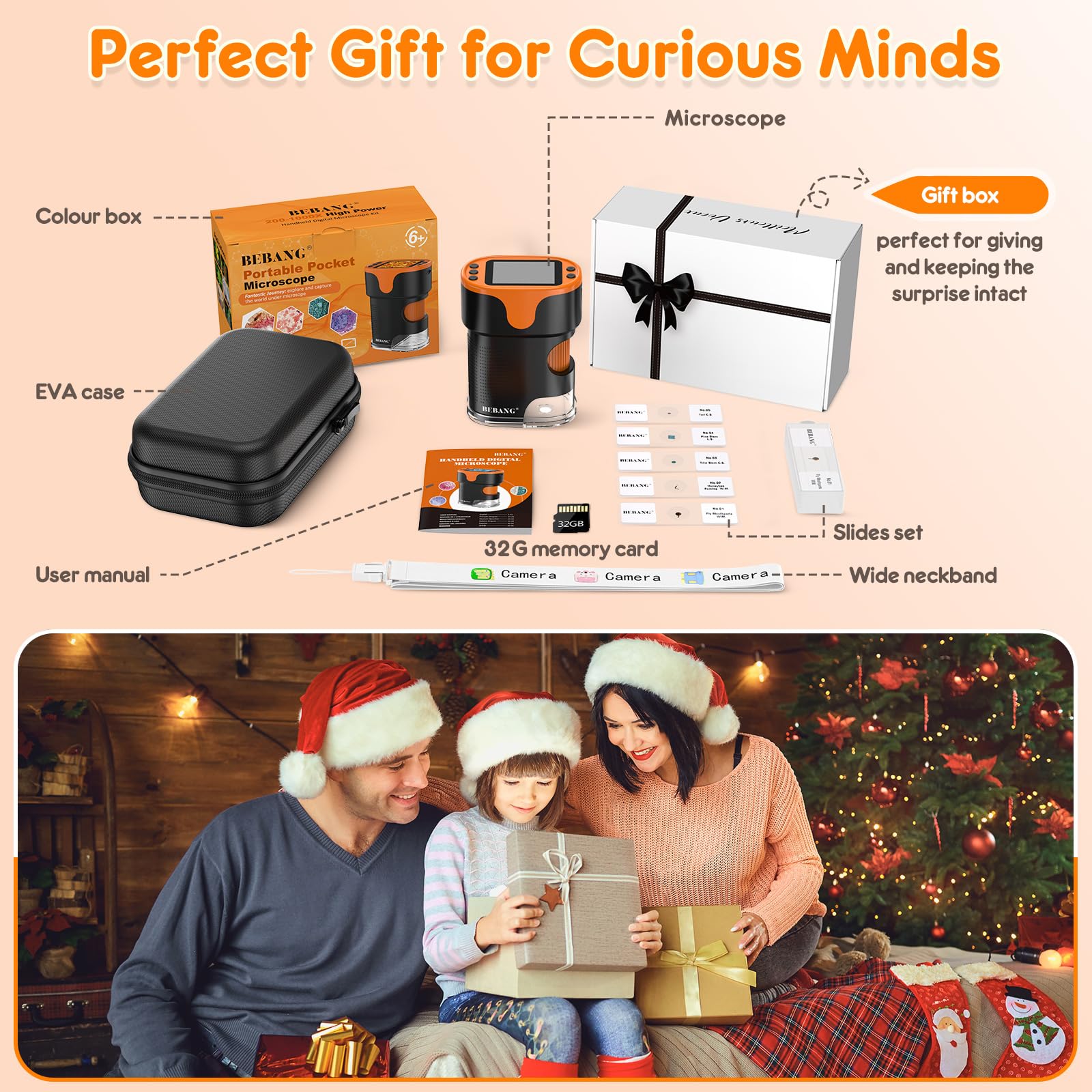 • 1000X Magnification: BEBANG microscope has 200x-1000x 5-level zoom range, allowing you to explore a wide range of specimens, from small insects and plants to everyday objects like coins and fabrics.