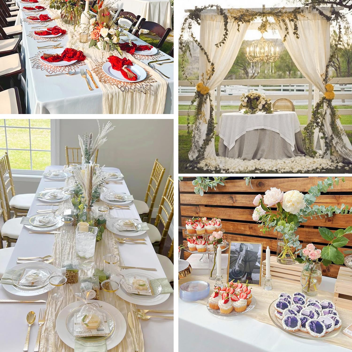 • 🌟【Long Beige Cream Table Runner Gauze】The size of each table runner beige is approximately 35 x 120 inches / 90 x 305 cm, which is large enough to cover rectangle and round tables, can also be spliced together for long tables. A simple and easy way to dress up a table as wrinkled design no ironing is required & they add a soft touch to your decor! The cream gauze table runner can be compressed, lightweight, and compact, easy to store, more space-saving.