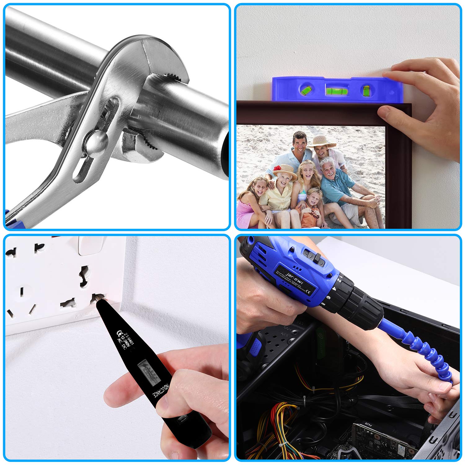 • 【Multi-functional Cordless Drill Driver Tool Kit】This professional home power tool drill set contains the most useful advanced tools for designing, repairing. Whether it is decoration, Furniture assembly, drilling, cutting, garden, office or daily home repairs. The compact tool kit has you covered with the right tools.