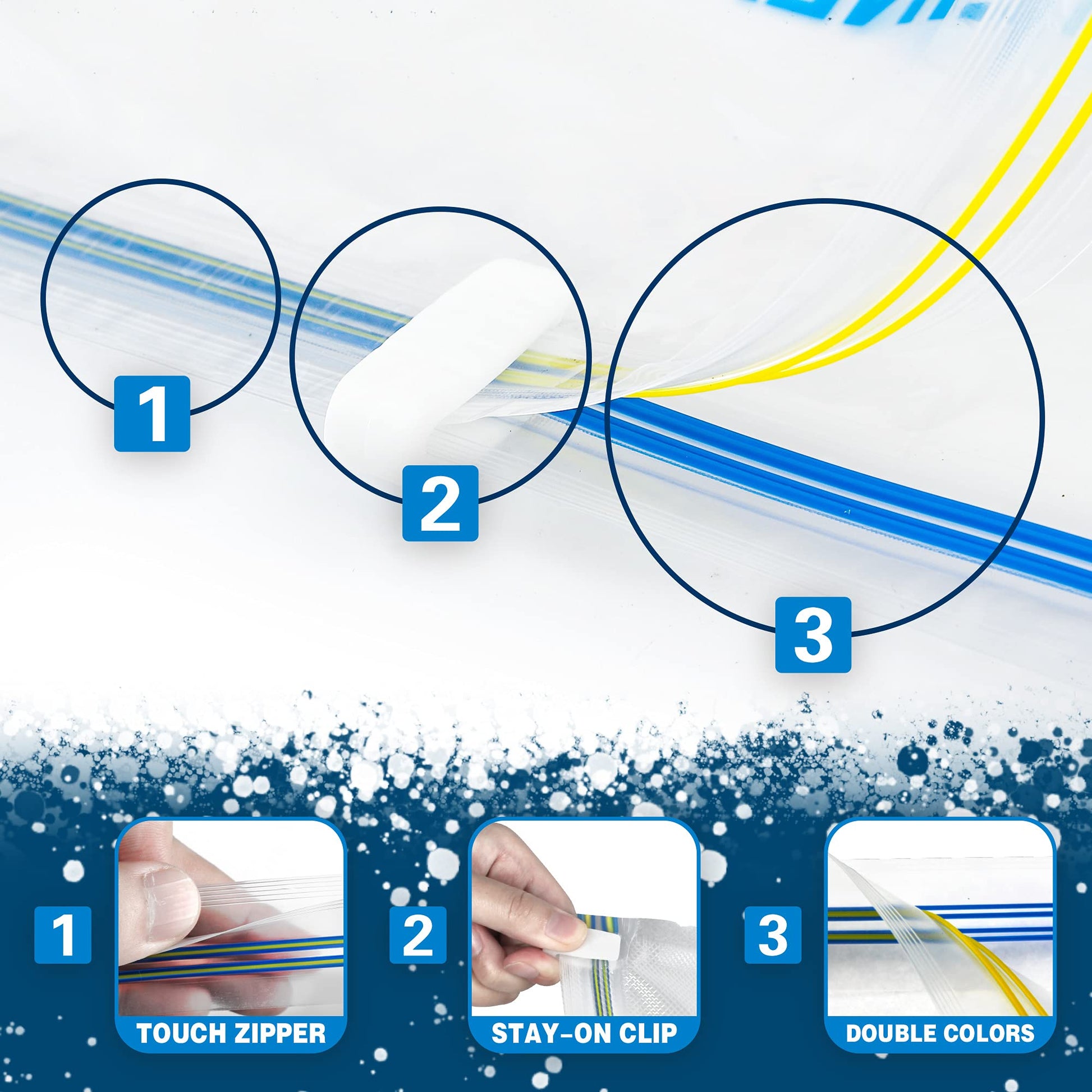 • Travel Accessories: the unique Double-Zip design has separated yellow and blue lines on each sides. Better visualize full sealing of the zipper closure.