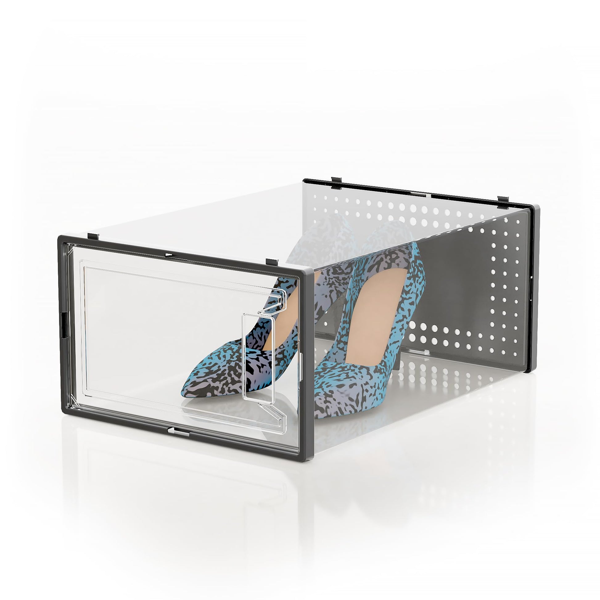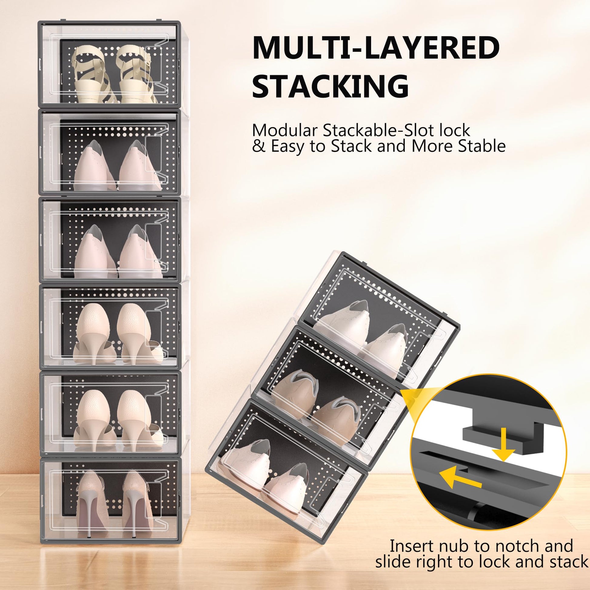 • Clear Shoe Manager: Clear shoe boxes stackable helps you search for your shoes quickly and efficiently, and ventilation design allows air circulation and odor prevention. Limited space saving fit for in the closet, wardrobe, hallway, entryway, bedroom, under bed and so on.