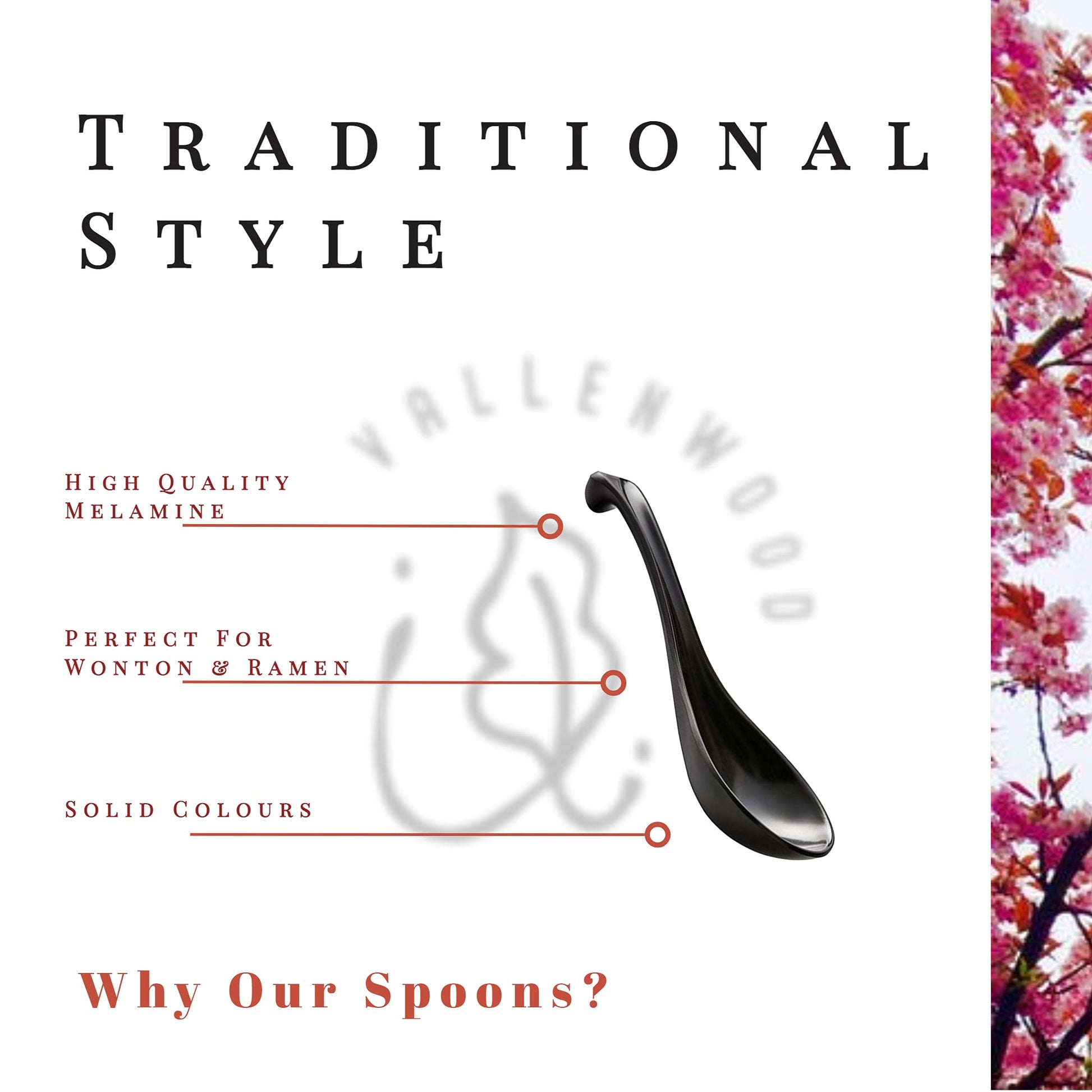 12 Pieces Ramen Set: 4 Black Spoons, 4 Chopsticks And 4 Stand rest. Asian Soup Spoons. Unbreakable Melamine Made. Perfect For Japanese And Chinese Food: Ramen, Wonton, Sushi, Miso, Rice, Pho Soup.