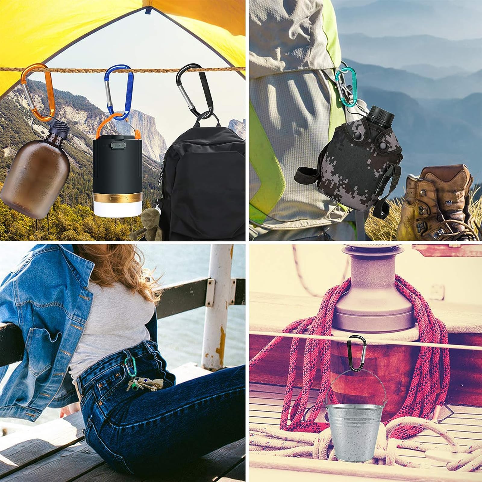 • 【Multi-Purpose Carabiner 】Carabiners can be easily attached to pocket, snap clips, hooks, carrier, chains, and carry keys, water bottles, camping gear, lanterns, lights, keychains, key ring, rope, climbing utility, hunting accessories, etc.Not recommended for climbing or heavy duty safety equipment.