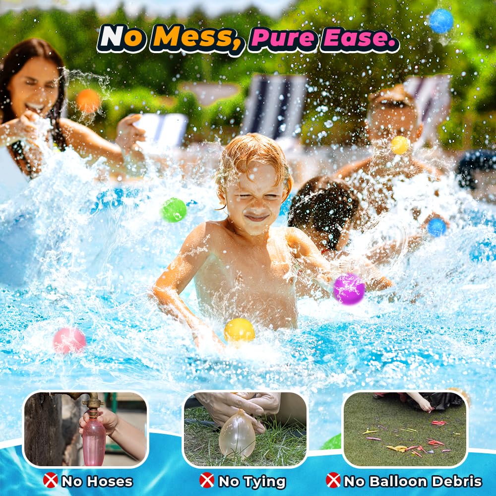 • Major Pool/Beach /Ourdoor Fun: Beat the summer heat with epic water balloon battles! Our reusable water balloons are the perfect choice for kids and adults alike! They are great for enjoying water fights in the park, backyard, beach, or pool. Click to add to cart and make a splash this summer!