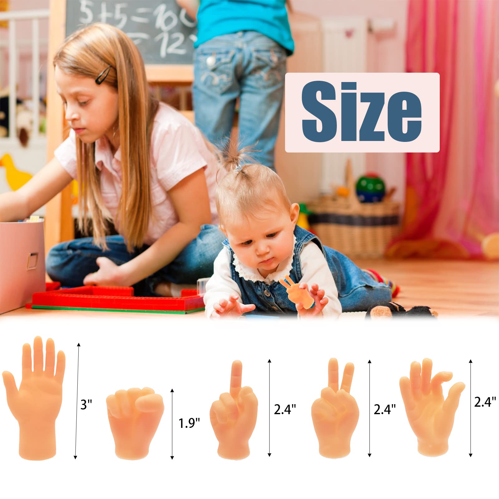 • ✋ Package Content:You will get 14 packs of little fingers.5 left hands,5 right hands,1 fist,1 finger hand for victory,1 OK finger hand and 1 middle finger gesture hand.You can play with your friends,family or pets with these fun little hands.