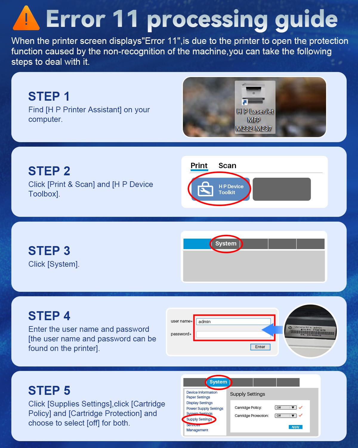 • Please note:Not Compatible "HP+" Service "e" Series Printer. The printer working with our toner could not show the remaining toner level ,but which will not affect the printing and page yield