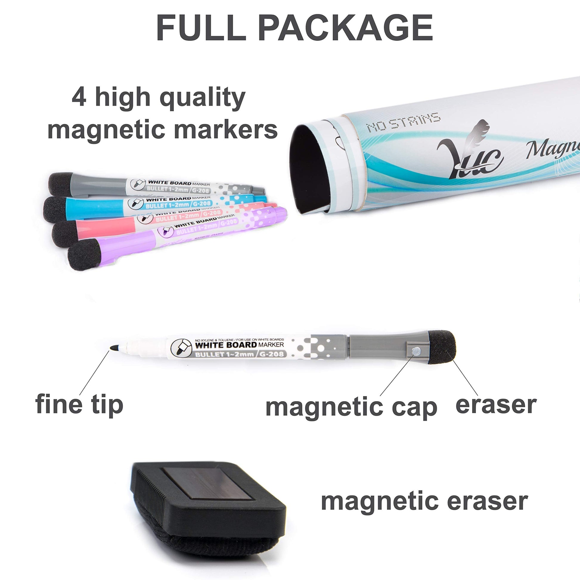 • Value pack - all magnetic - stong tube - The meal calendar for fridge includes high quality writing tools (1 black, 1 red, 1 blue, 1 purple) and a large magnetic eraser. All packaged in a nicely designed and strong tube to be protected on their journey.
