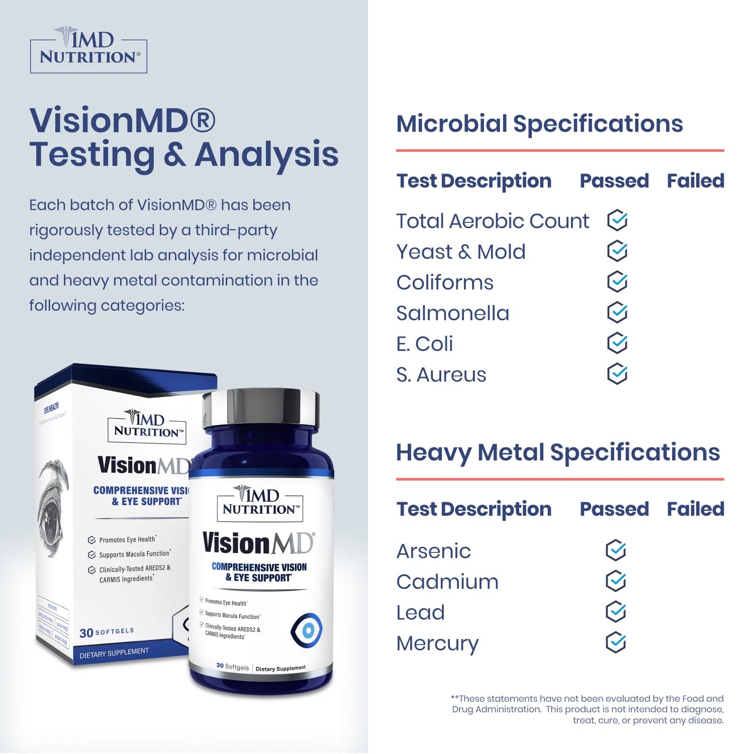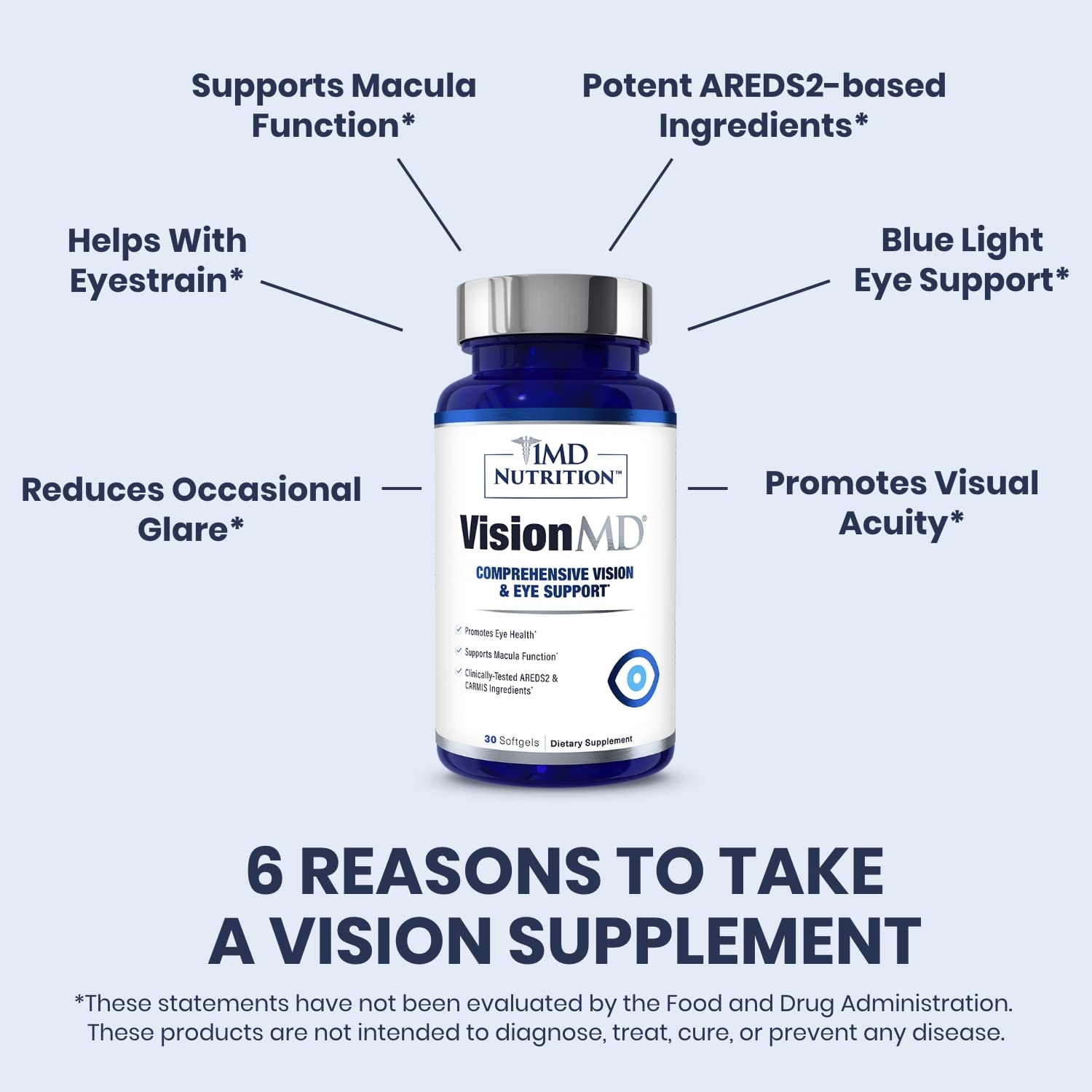 • AREDS 2-Based Formula : With 3 patented ingredients consisting of lycopene, mixed carotenes, and lutein with zeaxanthin, as well as protective vitamin E and astaxanthin, VisionMD uses the results of the groundbreaking National Eye Institute study on eye health and subsequent research to create a complete eye supplement.