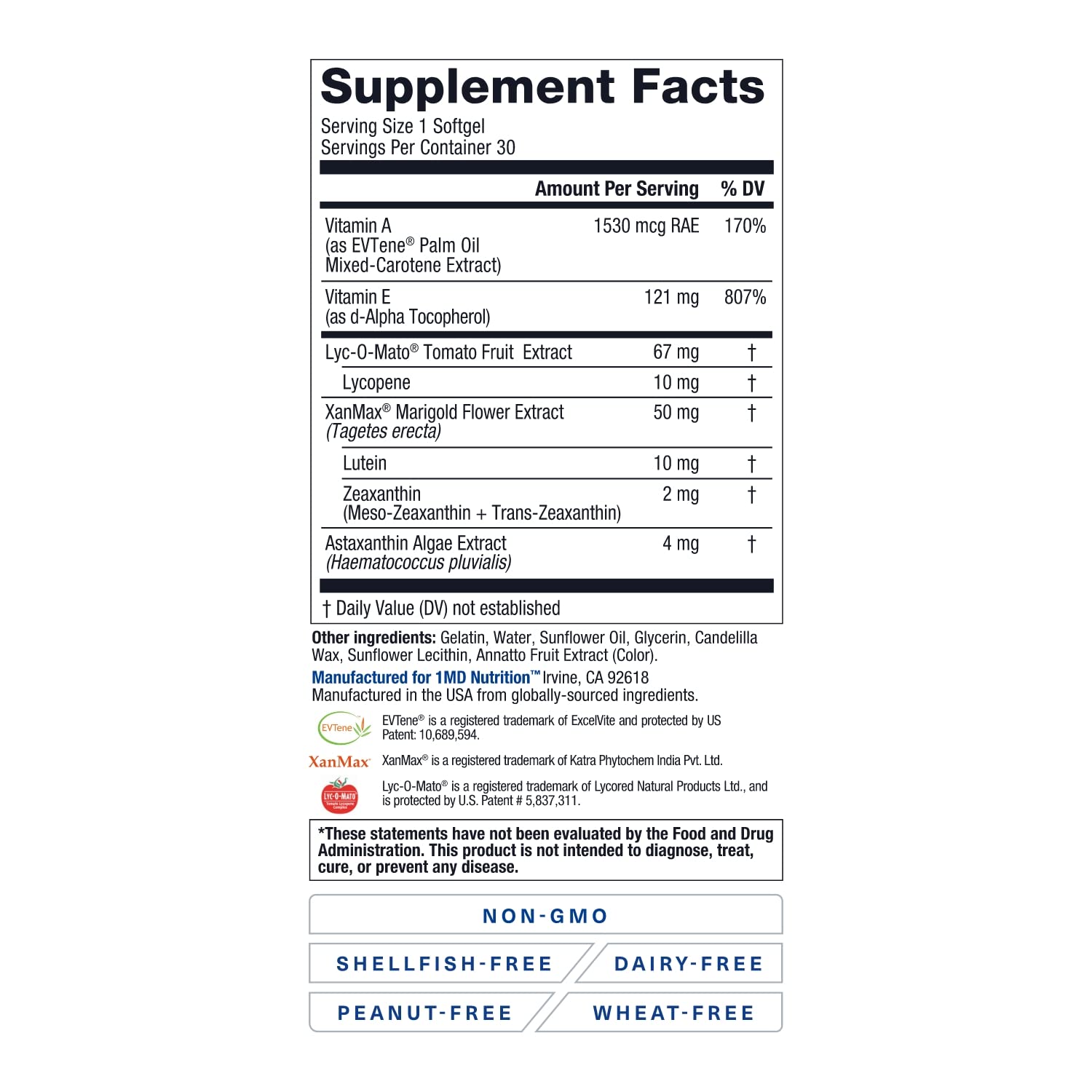 • Promote Healthy Eye Function: Thanks to Lyc-O-Mato lycopene, EVTene mixed carotenes, and OptiLut with lutein and zeaxanthin, the advanced VisionMD formula offers a complete eye health supplement to help you stay sharp both now and later.