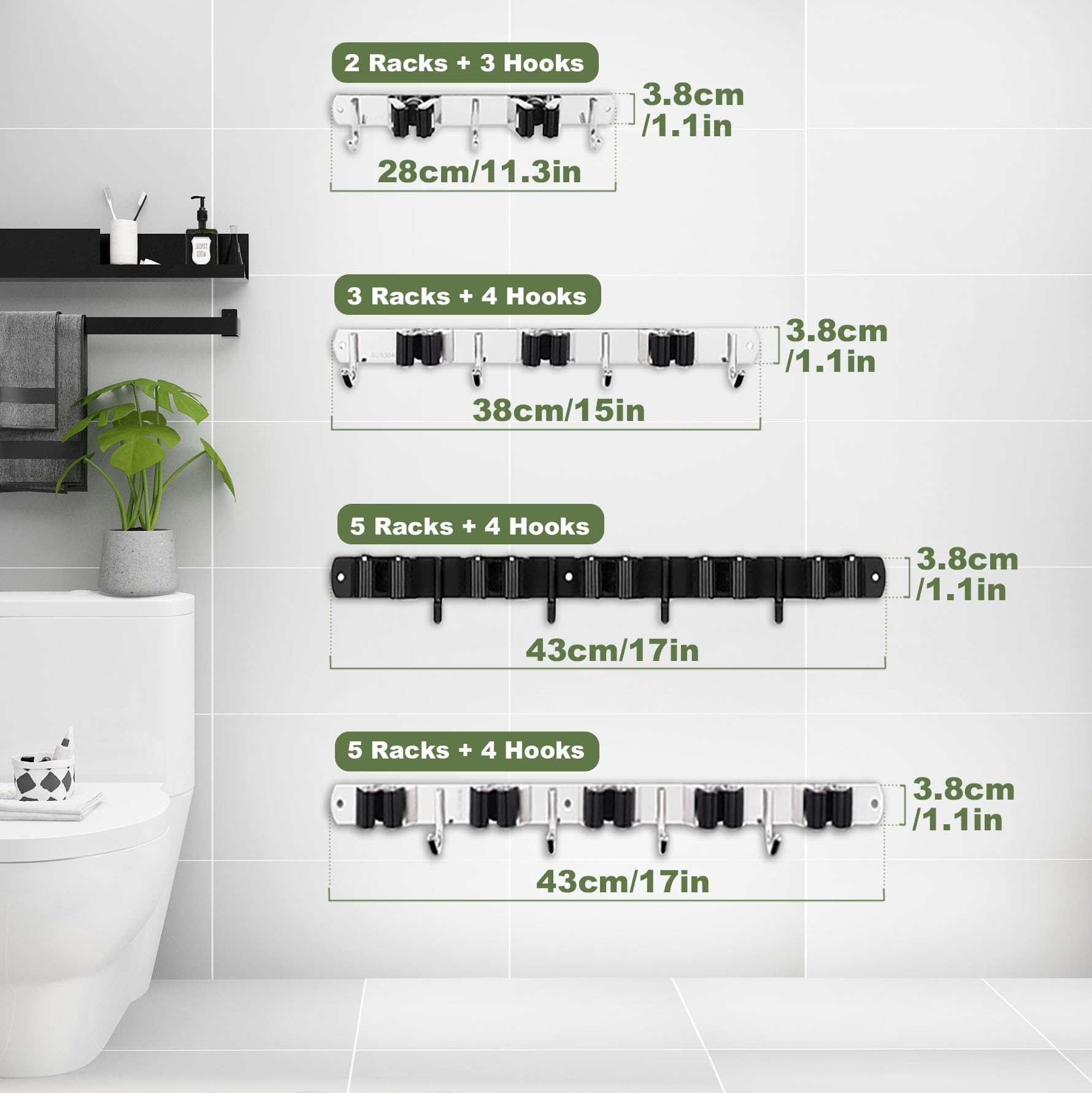 • Wide applications: The broom storage organizer is designed to hold various household objects to save space and decorate. This wall holder for brooms and mops is large enough to hang your brooms, mops, racks, rags, brushes, gloves, baseball bats and so on. Suitable for kitchen, bathroom, garage, laundry, broom closet, washing storage and even works outdoors or in the shed for your garden tools!