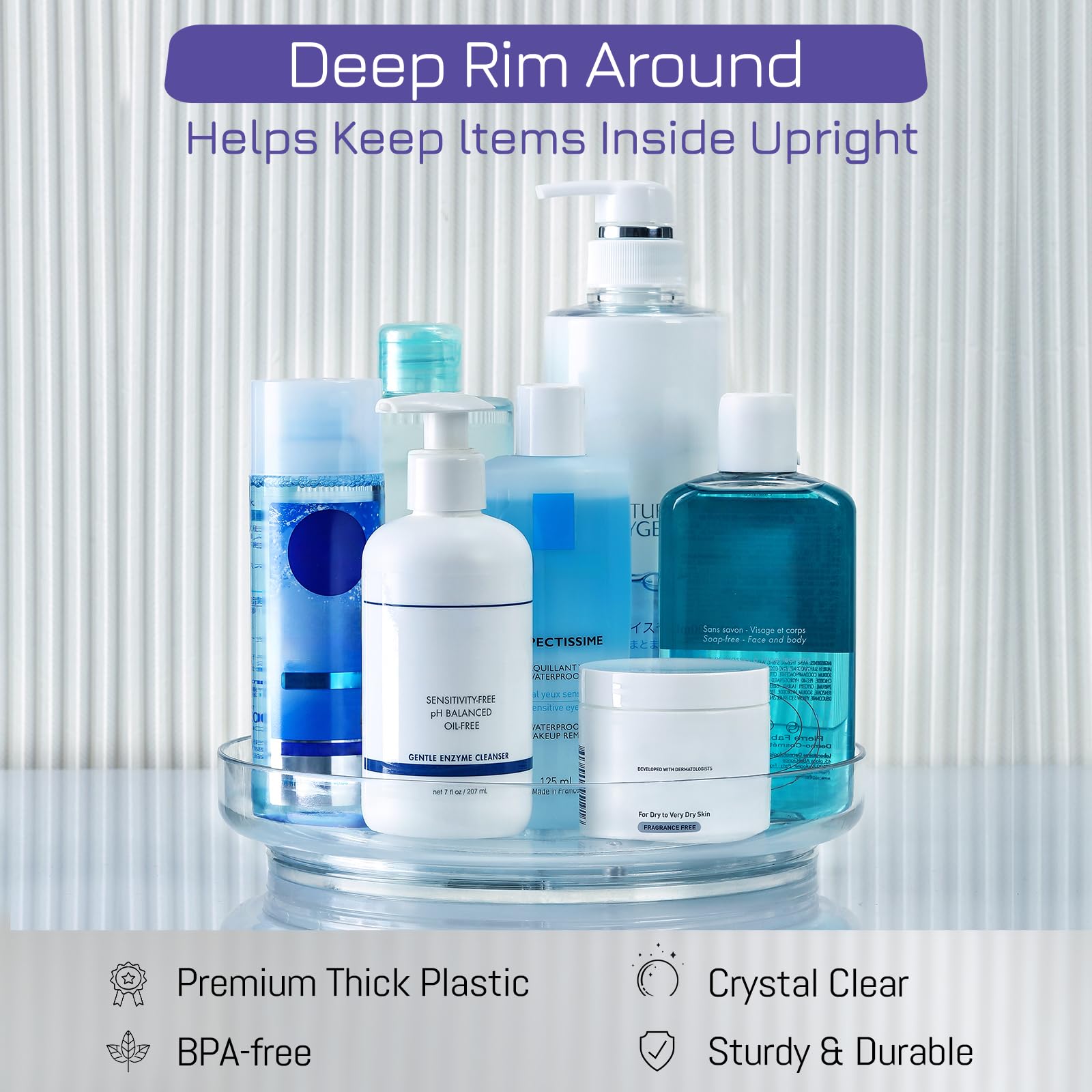2 Pack 9 Inch Clear Acrylic Lazy Susan, Non-Skid Turntable Organizer for Cabinet, Kitchen, Pantry Organization Storage, Refrigerator, Vanity Makeup, Bathroom Countertop Organizing, Rotating Spice Rack