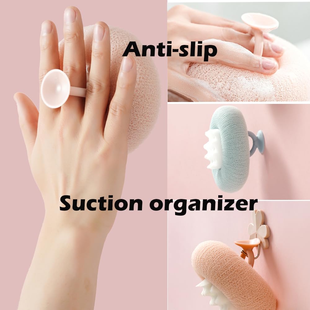 • [Loop design and suction organizer] Loop design can grip tightly to scrub the body ,better organize with the suction funtion