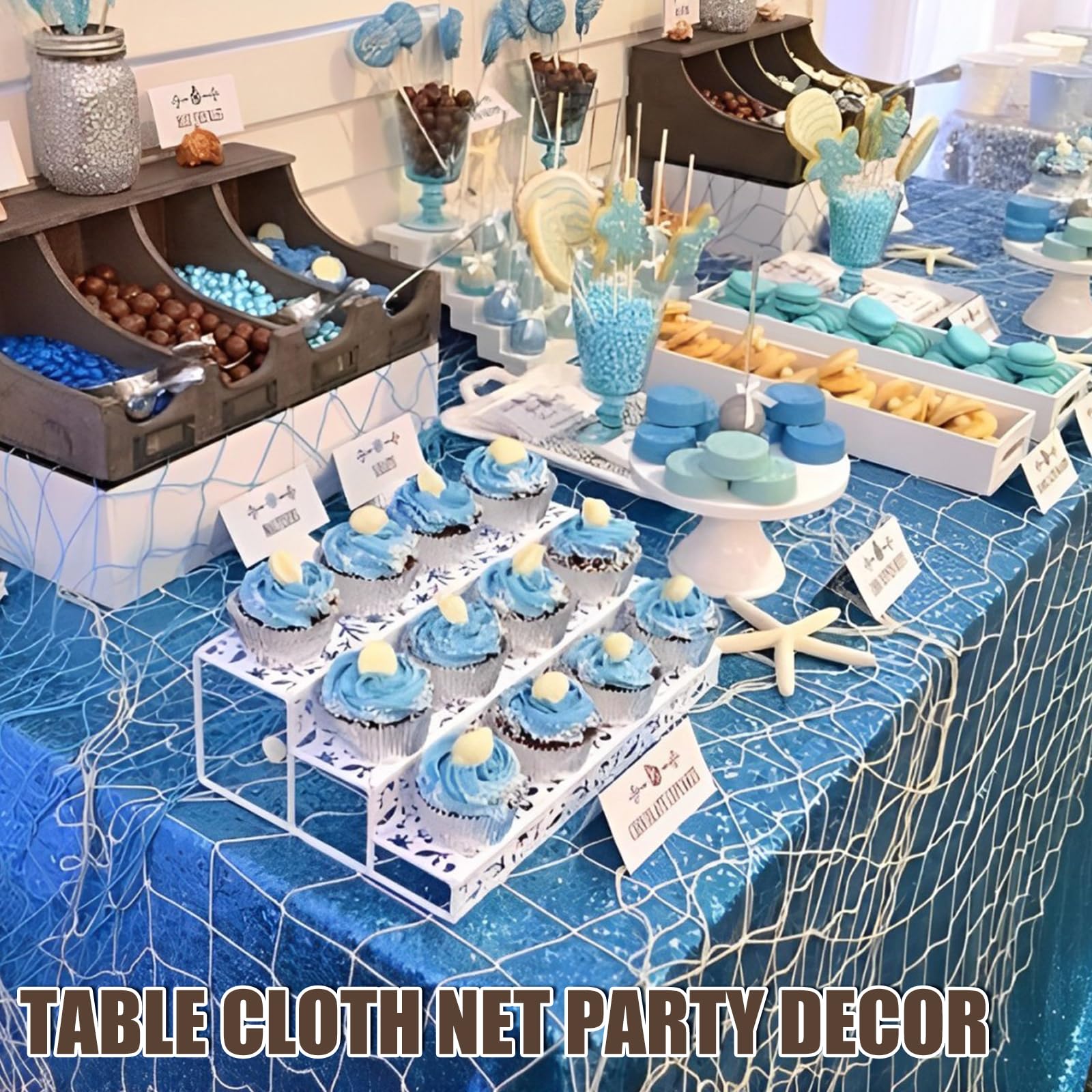 • Tablecloth - Spread this fishnet decoration on your table as a tablecloth. The table covers add subtle decor, and you can even place backdrops on your walls. It will add a realistic touch to beach party decorations.