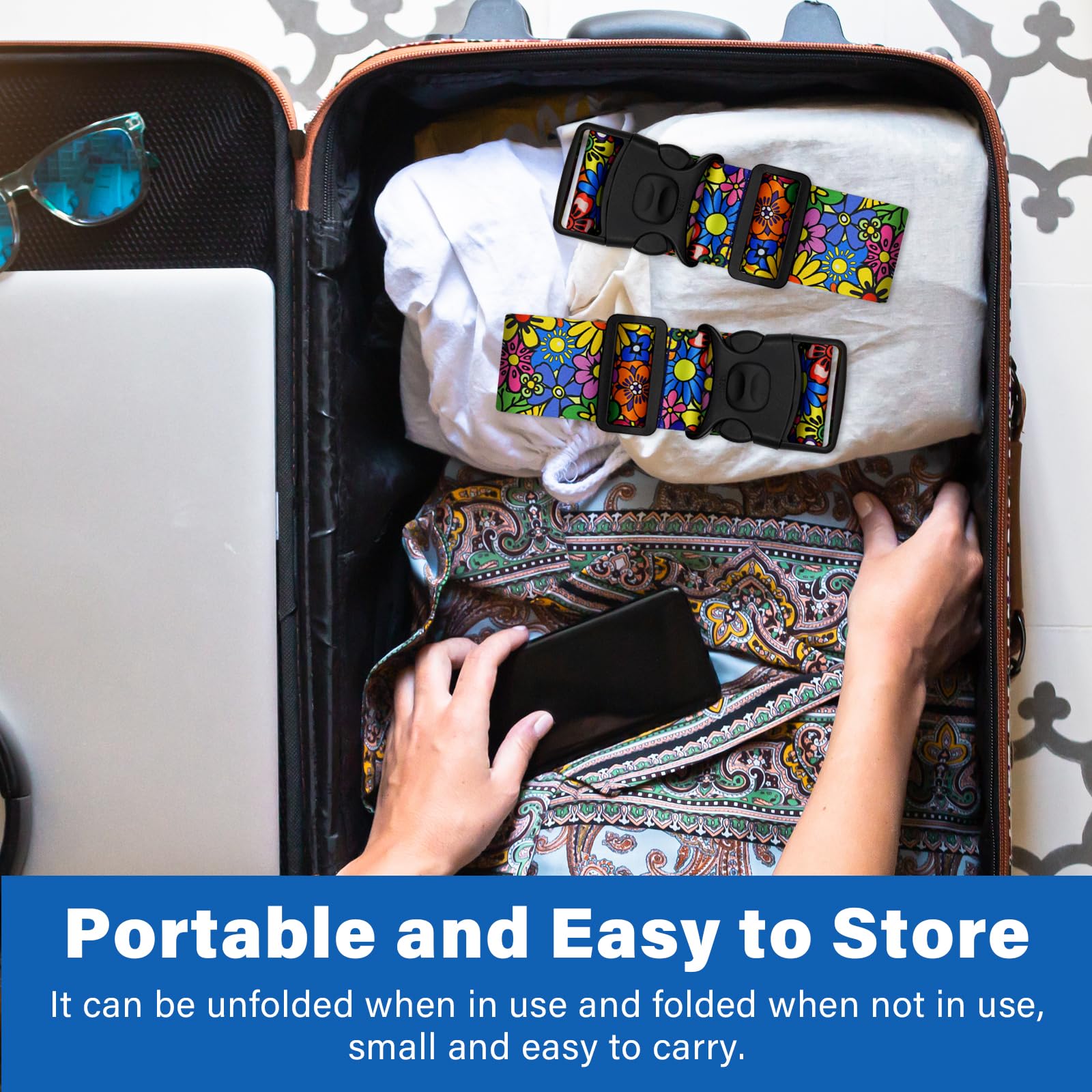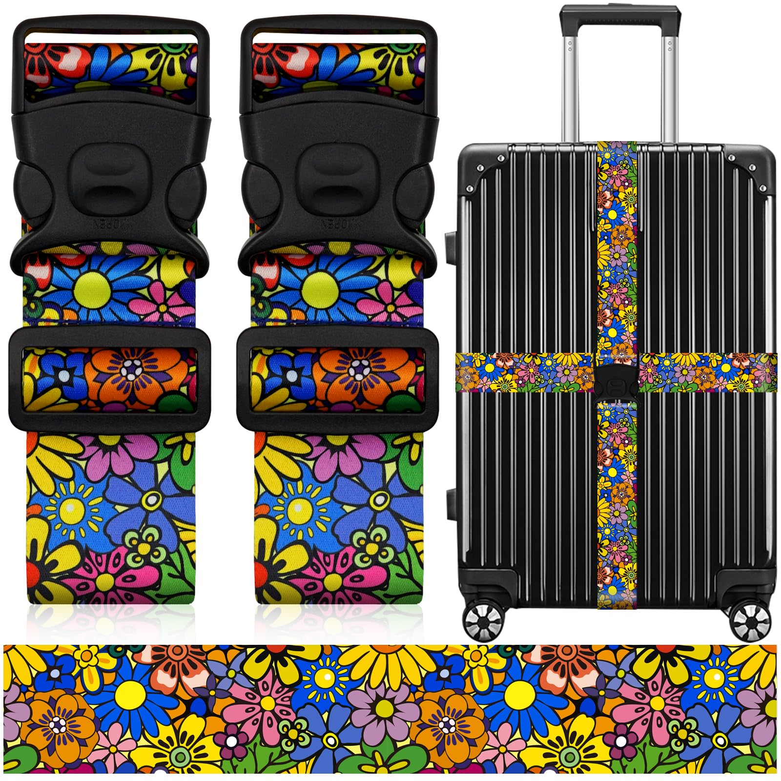 2 Pack Luggage Straps for Suitcases, Adjustable Travel Belt with Double Lock and Quick Release Buckle, Heavy Duty Nylon Bag Packing Strap, Bright Identifiers Business Travel Accessories-Sun Flowers