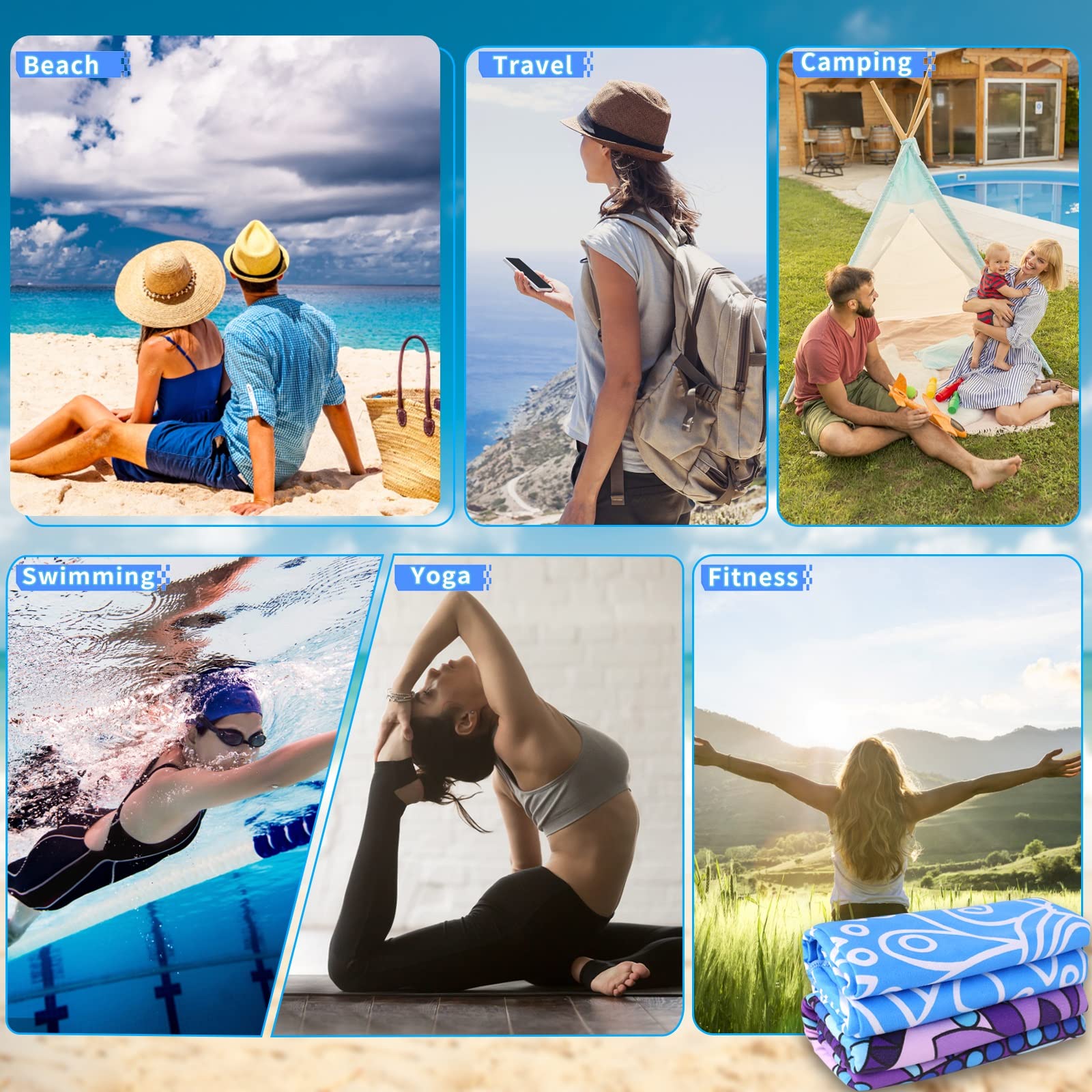 • NEW DEVELOPED 2 SIDES PRINTING : 2 sides printed beach towel is advanced and silky smooth against your body. It is an amazing companion when you do Yoga or Pilates.It is a perfect beach accessory for teen or adults,outdoor recreation,hiking,and it saves much space in your baggage