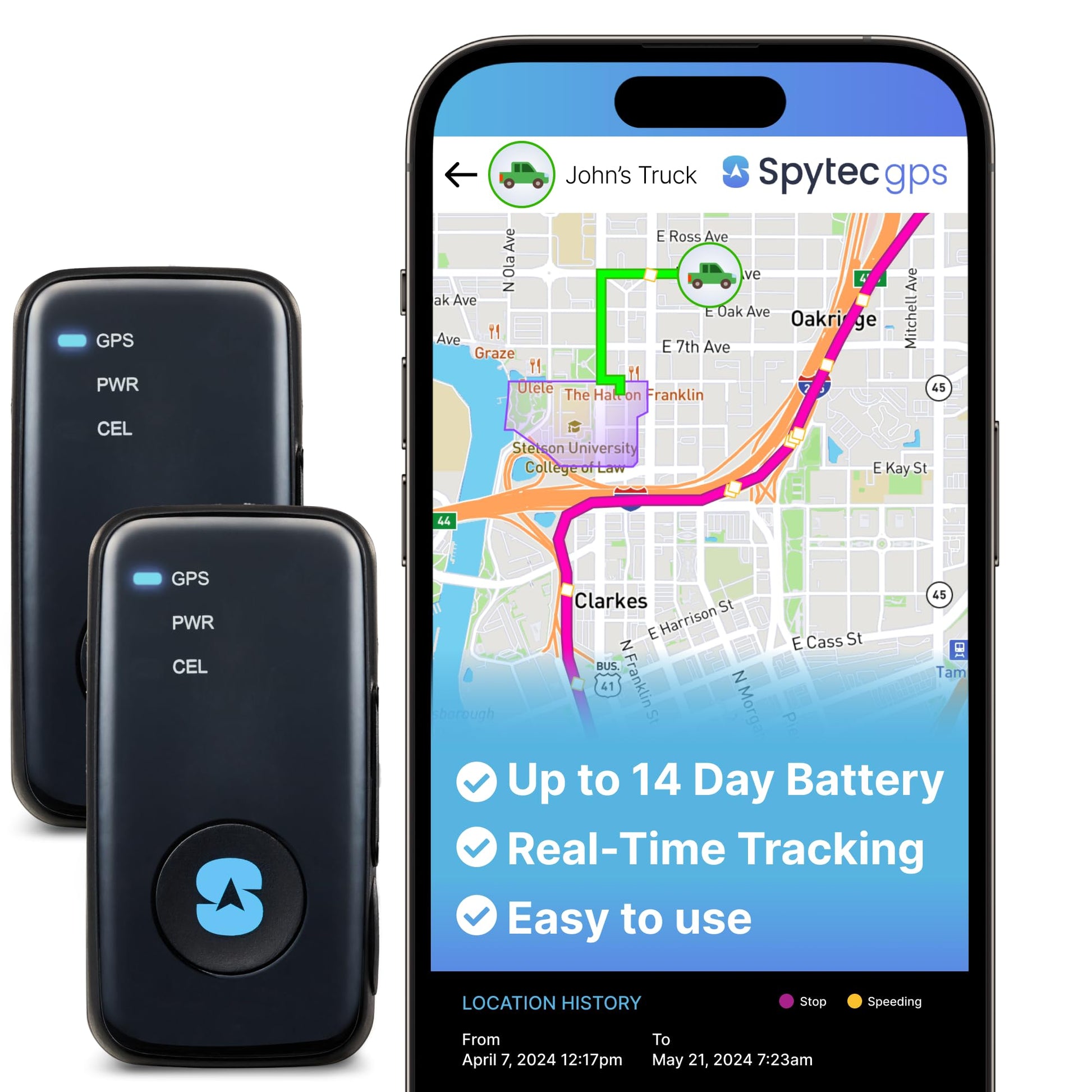 (2 Pack) Spytec GPS Smart Mini GPS Tracker for Vehicles Cars Trucks Loved Ones, Fleets, Hidden Tracker Device for Vehicles with Unlimited US and Worldwide Real-Time Tracking App - USA Made Tech