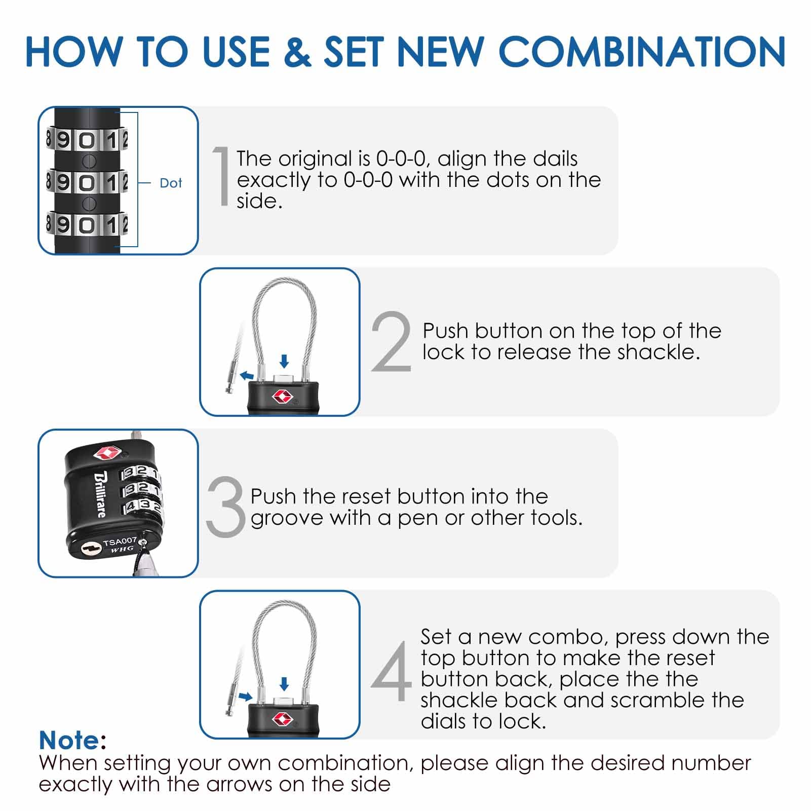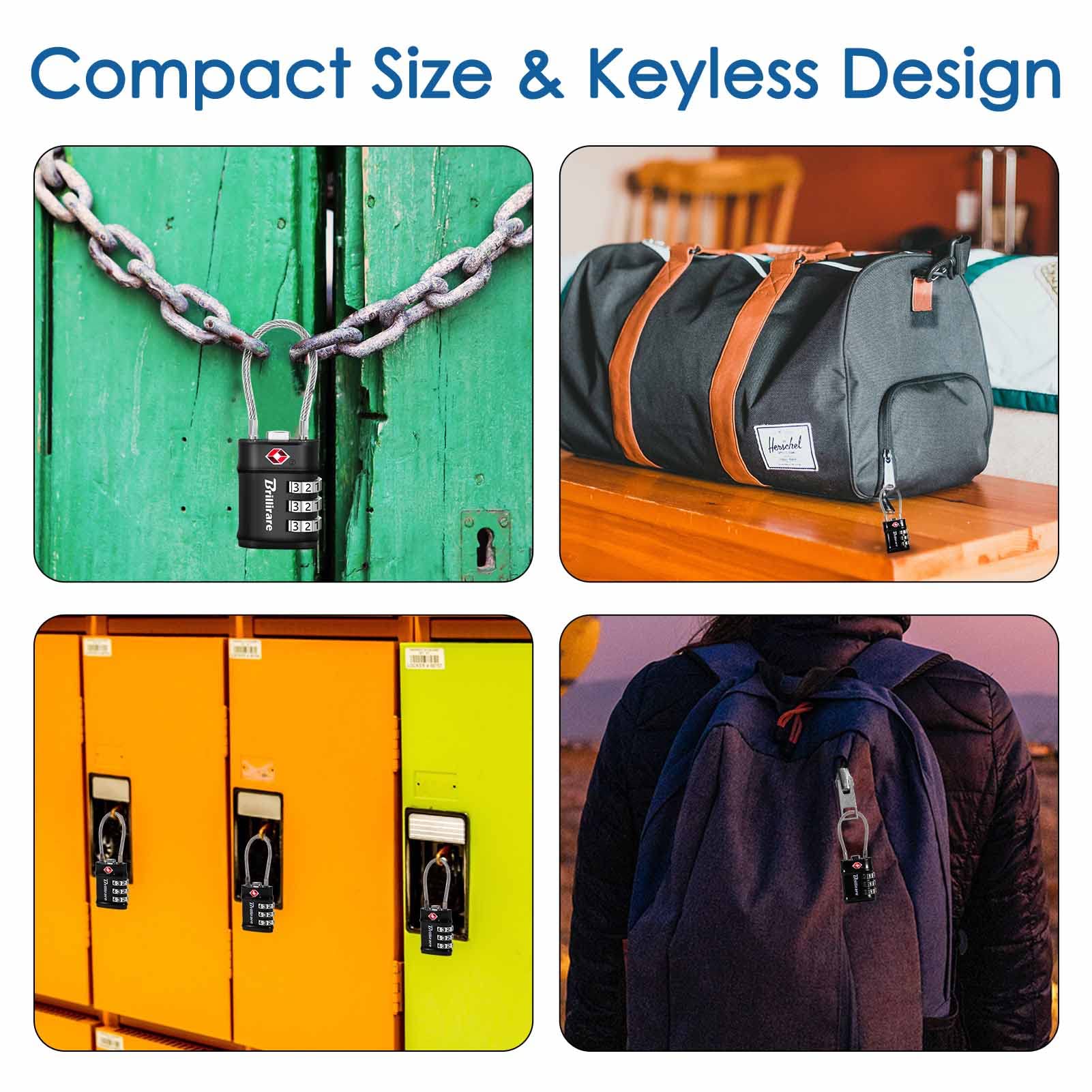 2 Pack TSA Approved Luggage Locks, Combination Travel Cable Lock, 3-Digit Waterproof Padlock, Zinc Alloy Outdoor Keyless Resettable Lock for Travel, Lockers, Bags, Backpack, Gym, Gate-by BRILLIRARE