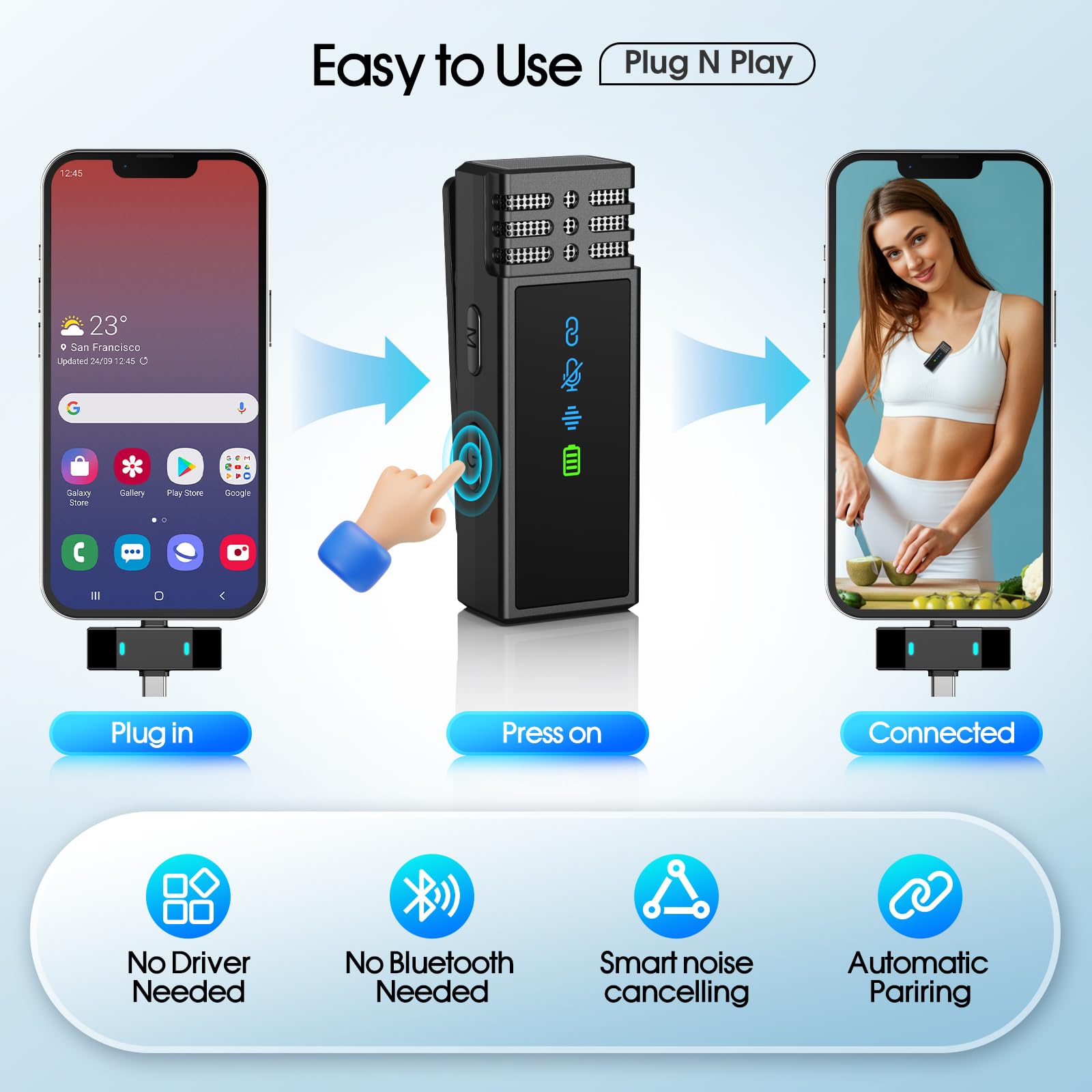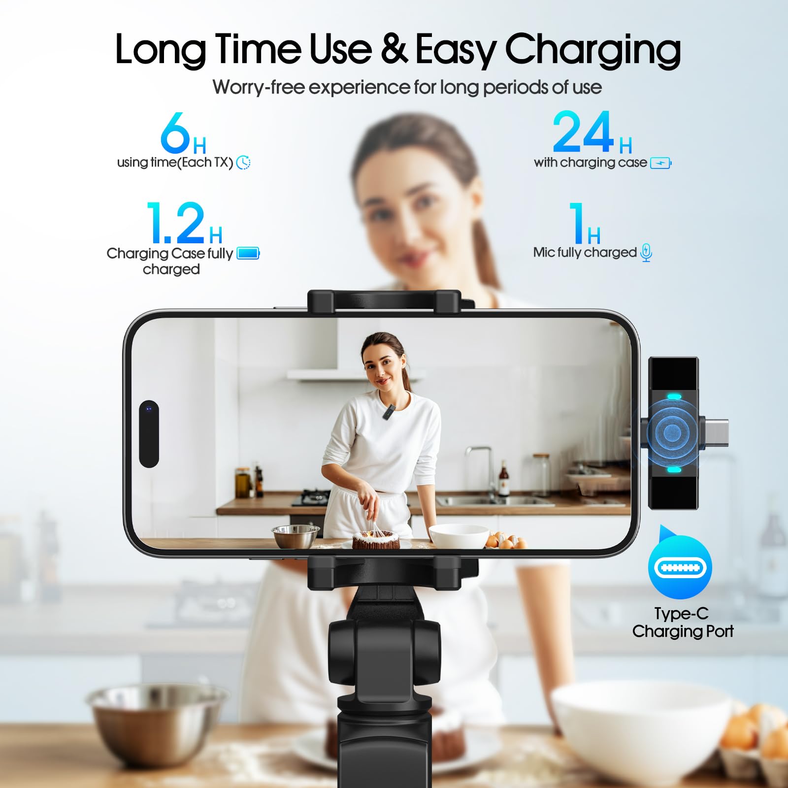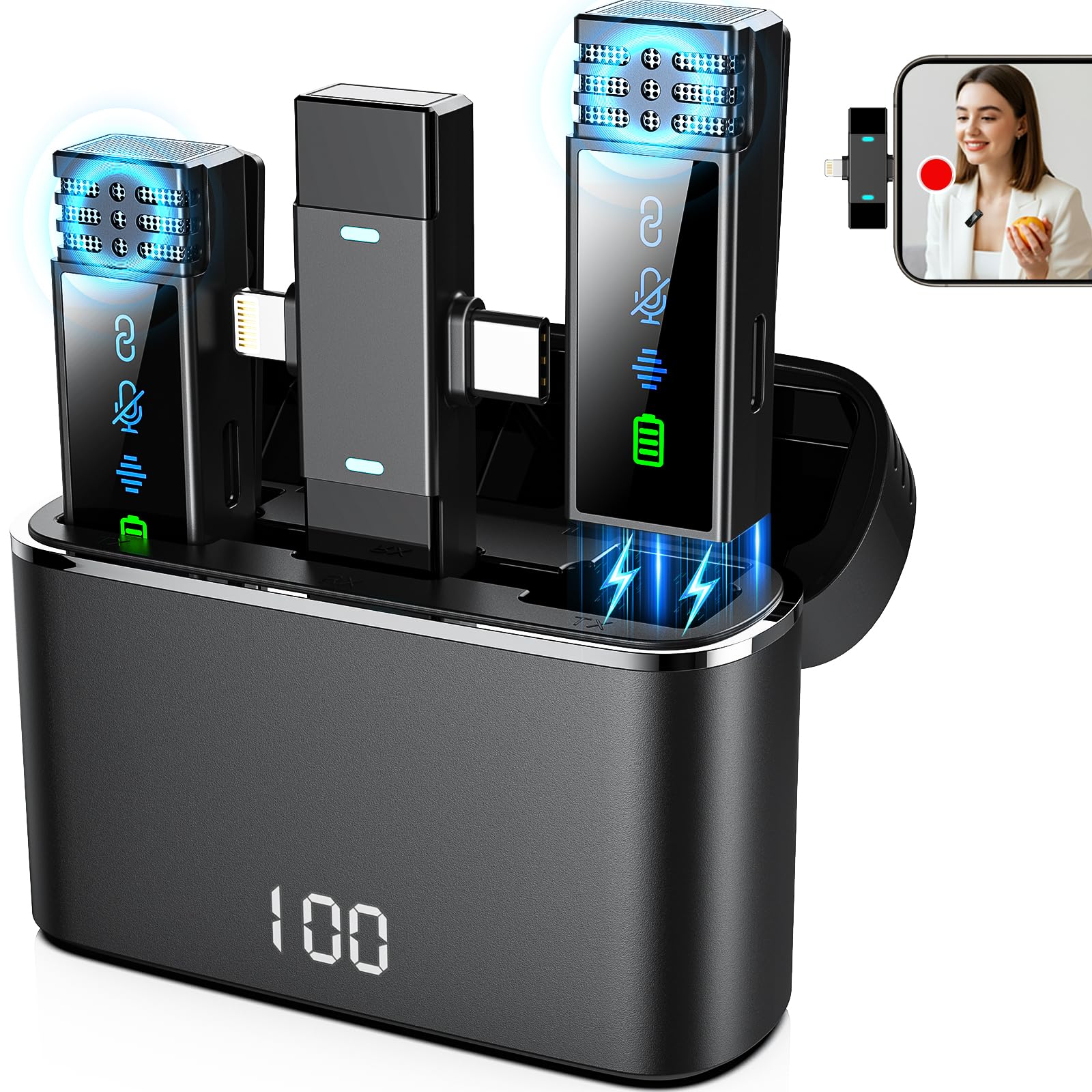 • 【Compatible with Most Devices】The receiver comes with the Type-C and Lightning Ports, the wireless microphone can compatible with iPhone 16, iPhone16 Plus, iPhone16 Pro, iPhone16 Pro Max and other iPhone, iPad series, Android smartphones, tablets and most smart devices