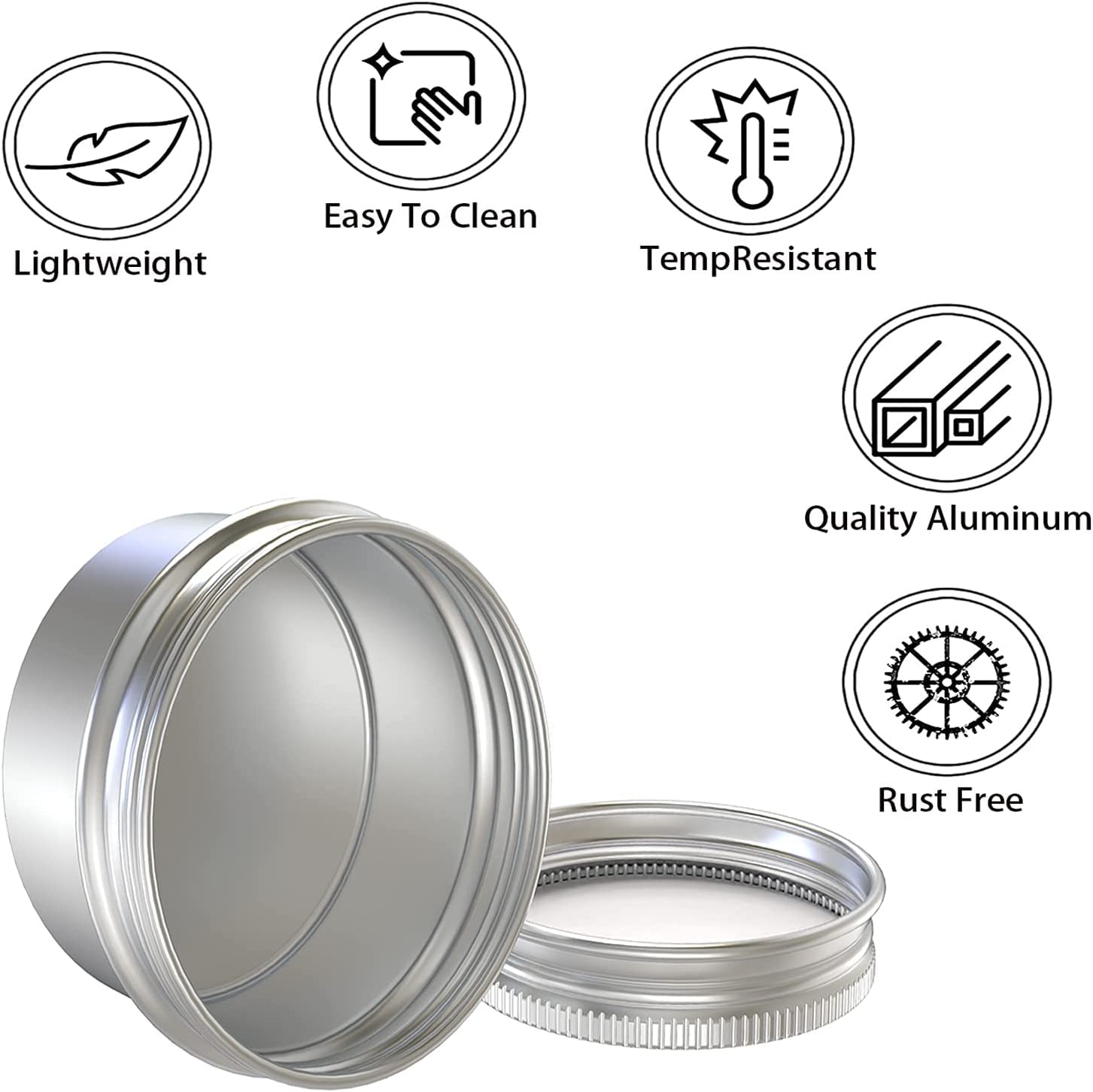 Details: APPLICATION: Our food-grade aluminum tin containers are dynamic storage jars, ideal choice for storing a wide variety of items like crafts, lip balms, lip gloss, mini candles, cosmetics, sample pots, handmade lotions,creams, balms and so much more. Keeps your products protected from overexposure to light, high temperatures, and body heat when stored in your pants pocket during your travel.