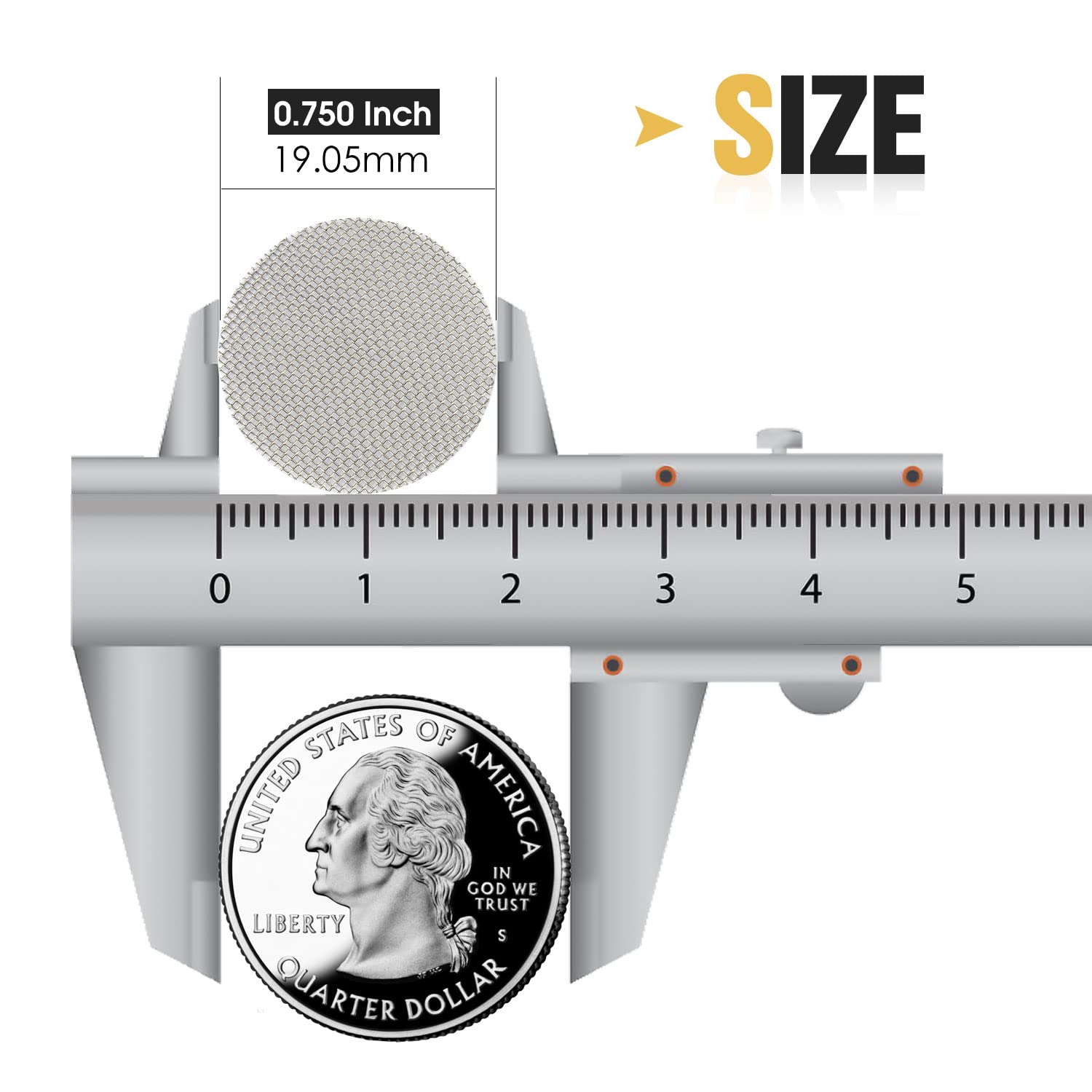 • Product Includes: 200 Pieces Premium Quality 3/4' (0.75Inch/19.05mm) Stainless Steel Fine (60 mesh) Pipe Screens, and one Metal Storage Box.