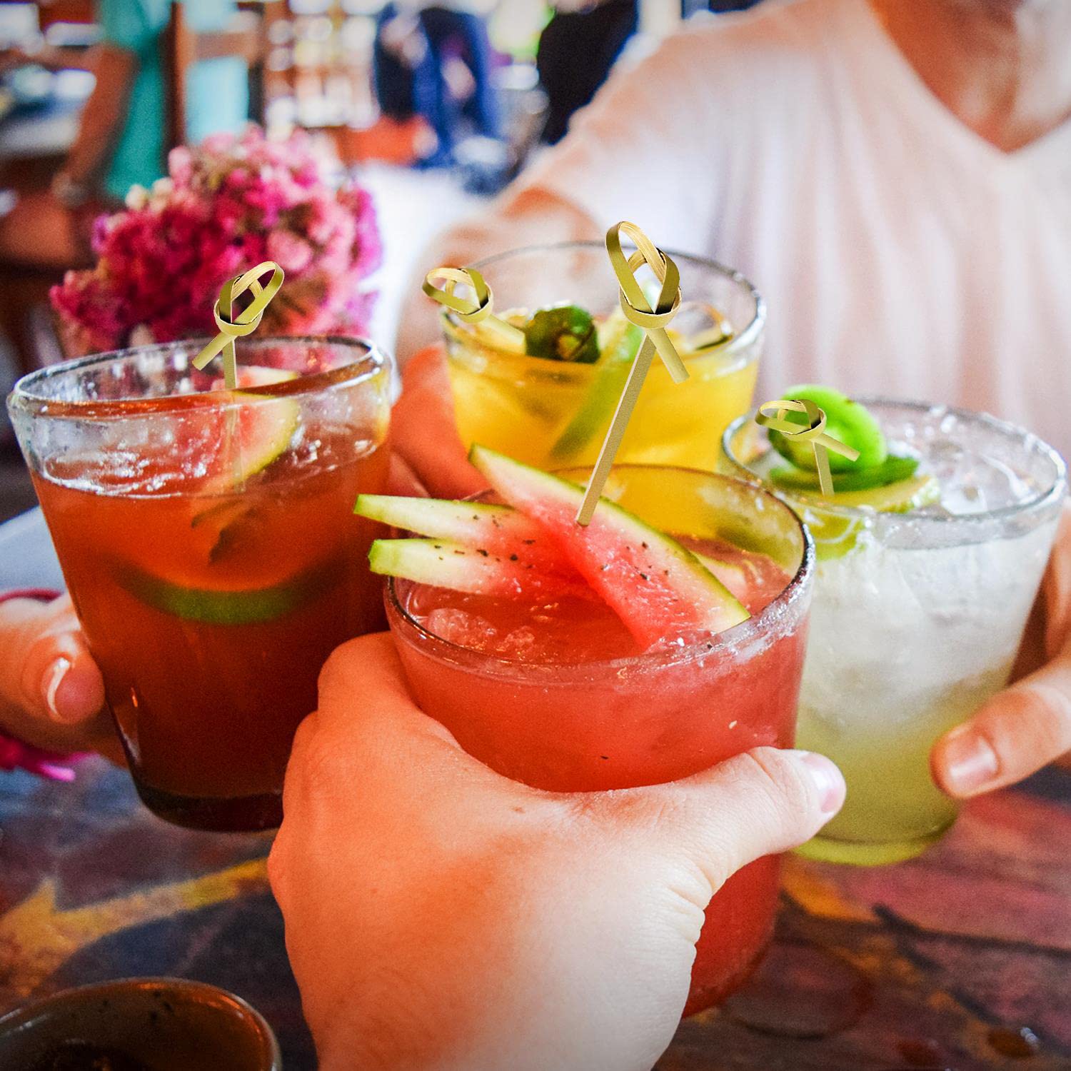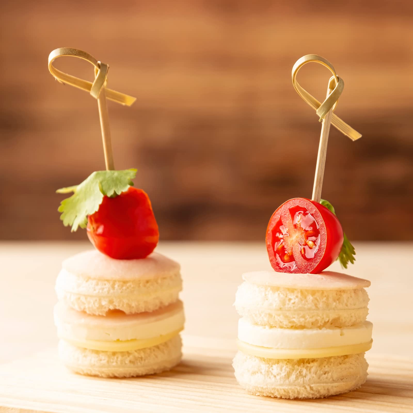 • UNIQUE KNOT DESIGN: Vicuna R bamboo picks with looped knot top add style and interest to your food presentation. In contrast to straight toothpicks, the knot at the top prevents food from falling out, making it easier for you to hold. As a decorative and functional cocktail sticks, it can be used in a wide variety of large parties and important occasions.