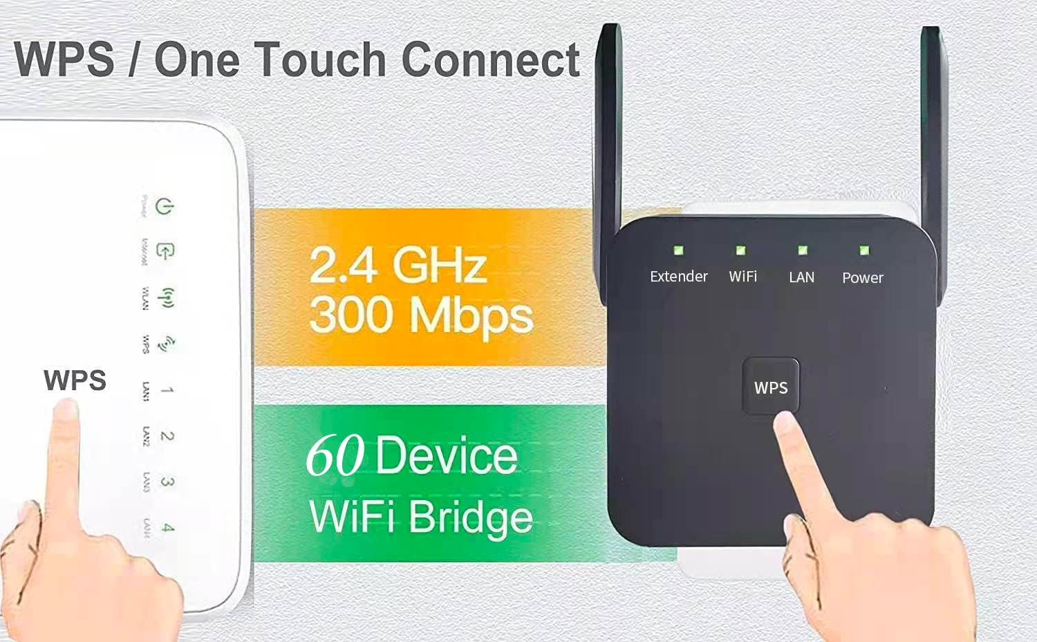 • ✅One touch connection - Press the WPS Button on routers then press WPS on Wifi Extender to make fast connection.