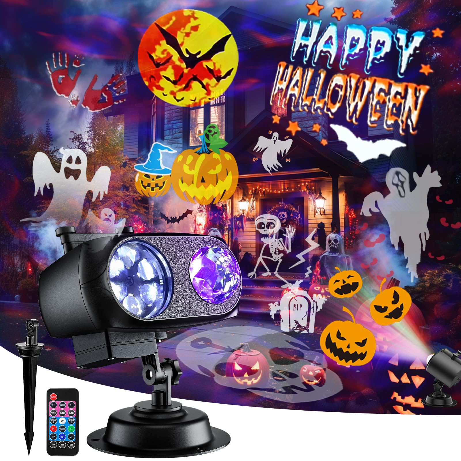 • 【Brighter and Clearer Halloween Projector Light】This is the latest upgraded Halloween decoration projection light, it can use the remote control for switch control , mode and brightness adjustment. Using high-definition digital projection technology, the projected patterns are richer and clearer, and the animation will not fade even after two years of use. It is brighter and more high-definition than similar projection lights on the market. It is very suitable for decorating your house and garden during Halloween, giving you An unforgettable holiday.