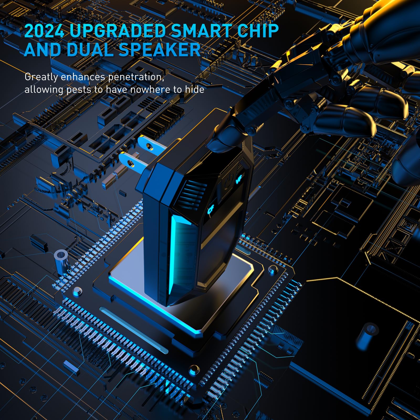 • Functional upgrades in 2024:Intelligent frequency conversion with two different sound wave frequencies, covering a frequency range of 15KHZ-75KHZ, can more effectively deal with various types of pests and keep your family away from pest infestation