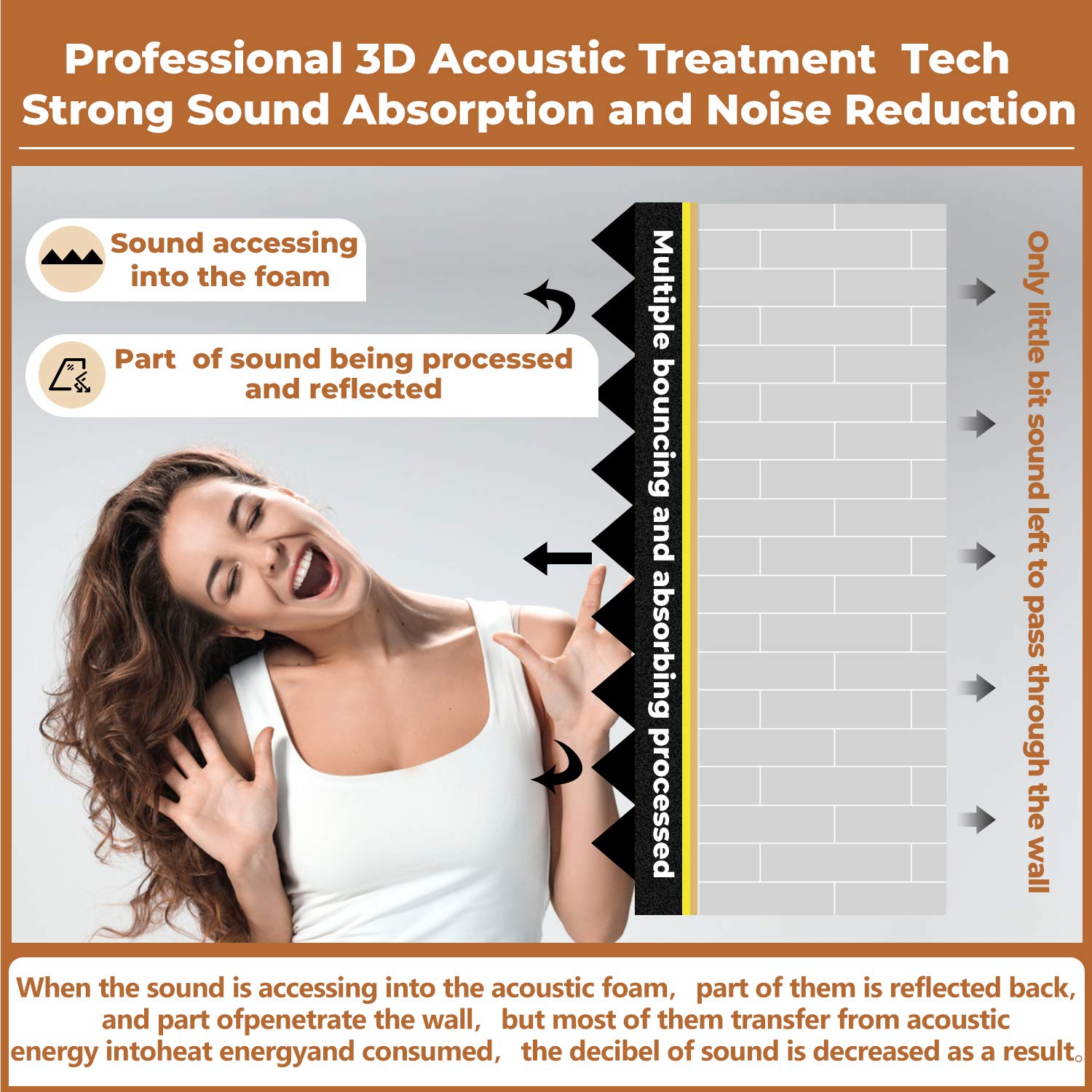 • Exceptional Sound Absorption:These pyramid acoustic panels are engineered to effectively absorb sound waves, reducing echo and reverberation. With a high NRC (Noise Reduction Coefficient), they create a quieter, more acoustically balanced environment, ideal for recording studios, home theaters, and offices.