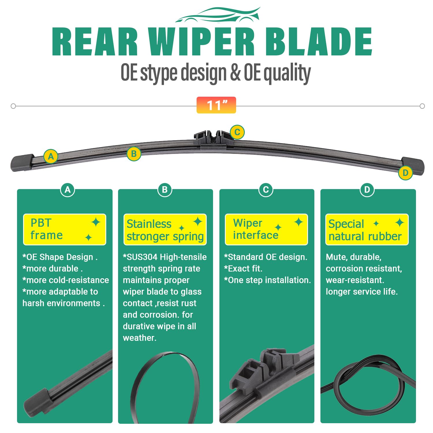 26" 22" 11" Windshield Wiper Blades Replacement for Ford Explorer 2011 2012 2013 2014 2015 2016 2017 2018 2019 2020 2021 2022 2023 2024 OEM Premium All Weather Front Rear Wipers Set (Pack of 3)