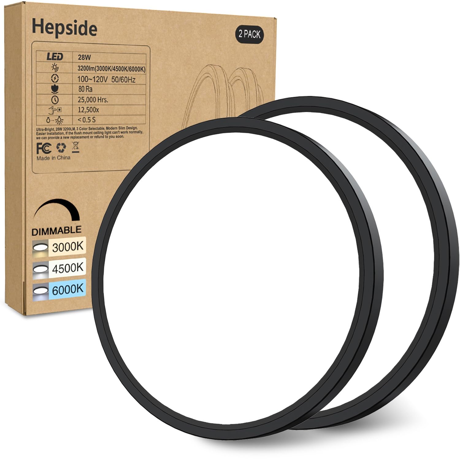 • 【Brightness Dimmable and 3 Color Modes】 Hepside led ceiling light flush mount has 3 kinds of color temperature (Warm white 3000K, Natural white 4500K, Daylight white 6000K), the brightness range can also be adjusted between 10%-100%.Also available as a night light, this ceiling light fixture has a minimum dimming brightness of 10% at 3000K warm white. Children or the elderly will feel safer at night due to the quiet and comfortable light source.