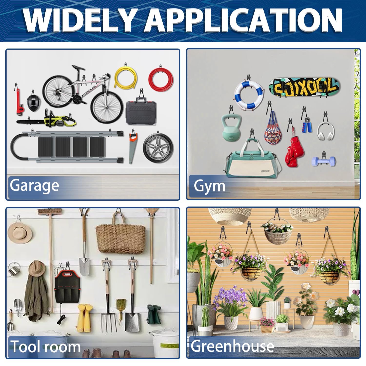 • Multi-Use Utility Hooks: The storage hooks for hanging in garage are ideal for garage, garden, shop, basement, warehouse, shed, or man cave, etc Outdoor occasions. Our garage hooks for hanging can provide a great solution to use garage storage space more efficiently, the garage organization can hang various items like garden tools, ladders, bikes, strollers, chairs and so much more