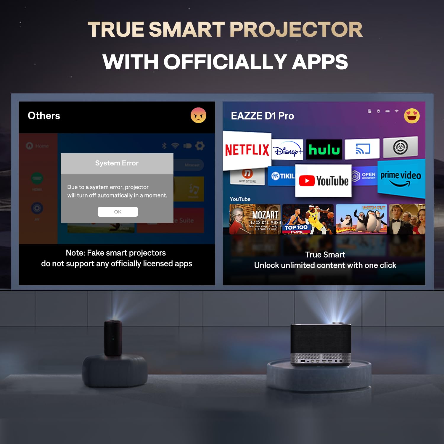 • Smart TV OS & Officially-Licensed Apps: BOOM 3 smart projector is equipped with self-developed smart TV OS to support 1,000,000 videos. No need to connect HDMI and say goodbye to complex WiFi screen mirroring setups, the certified Netflix, Prime Video, and YouTube streaming services enable you to quickly launch your favorite movies or TV shows with just one click. Besides, Open Browser, My App, and the APP STORE are all readily available for endless entertainment