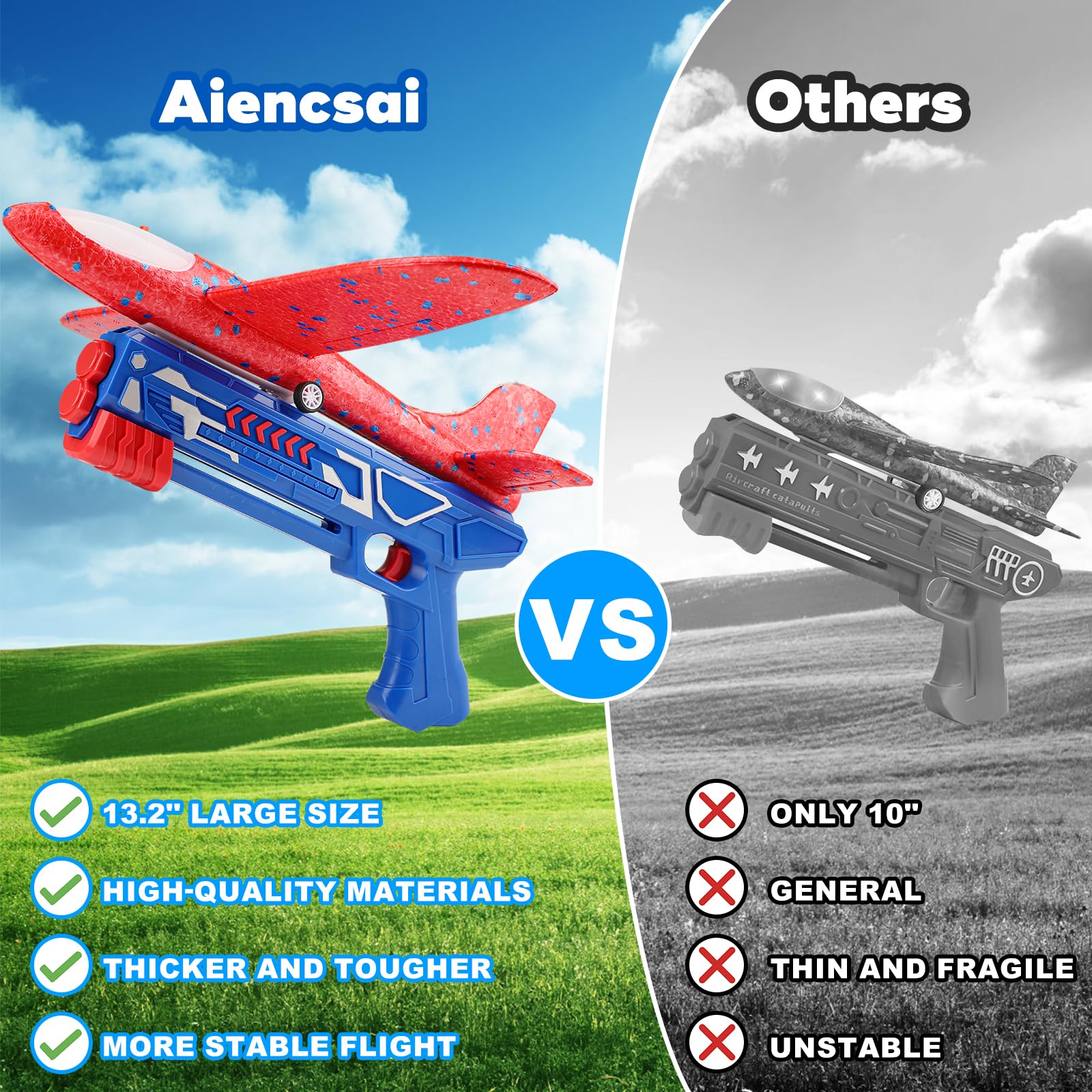 3 Pack Airplane Launcher Toy, 12.6" Foam Glider Led Plane, 2 Flight Mode Catapult Plane for Kids Outdoor Sport Flying Toys Gifts for 3 4 5 6 7 8 9 10 12 Year Old Boys Girls