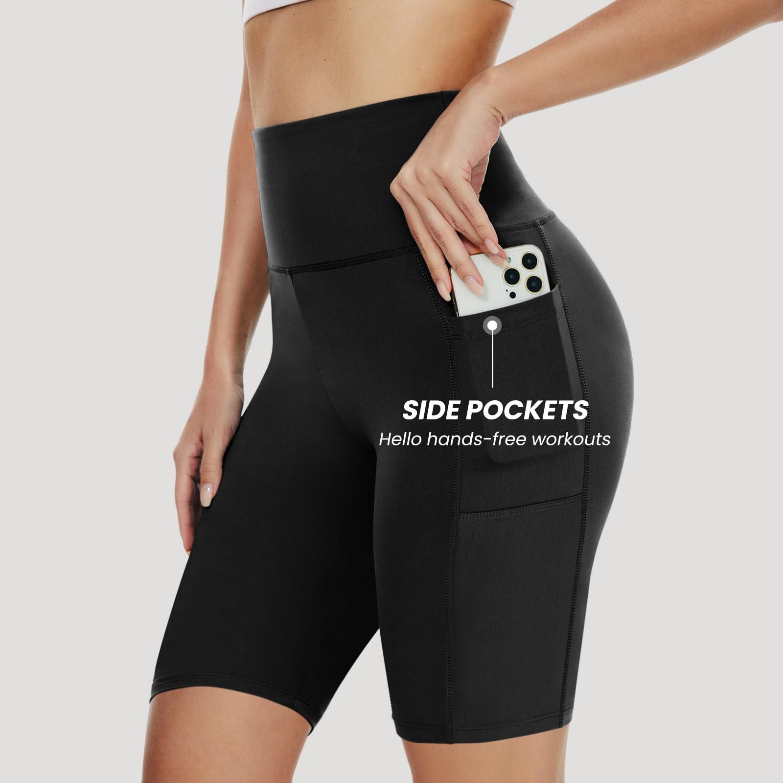 3 Pack Biker Shorts for Women – 8" Black High Waisted Tummy Control for Gym Workout Athletic Cheerleading Yoga