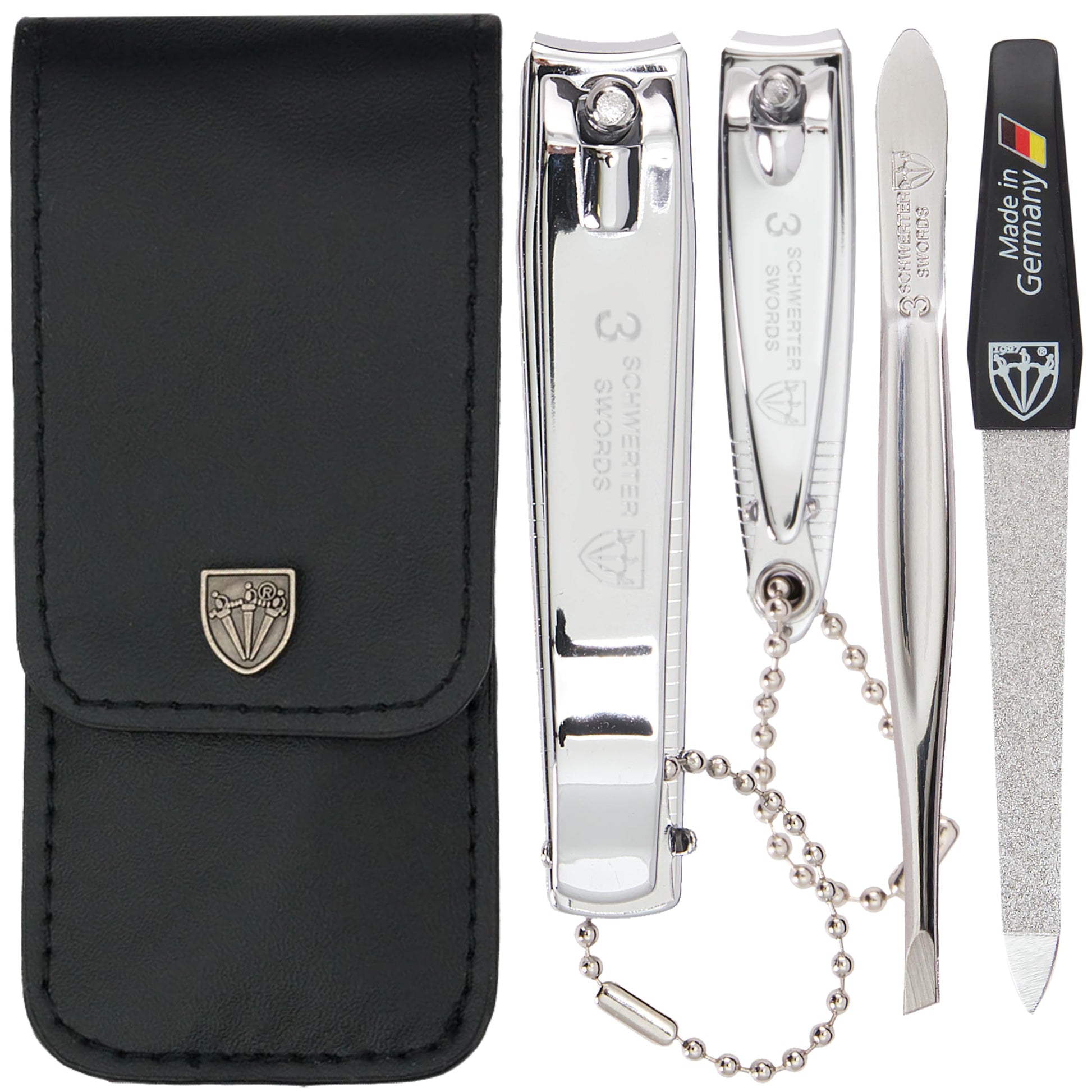 3 Swords Germany - Brand Quality 4 Piece Manicure Pedicure Grooming kit Set for Professional Finger & Toe Nail Care Tweezers File Clipper Fashion Leather case in Gift Box, Made by 3 Swords (77211)