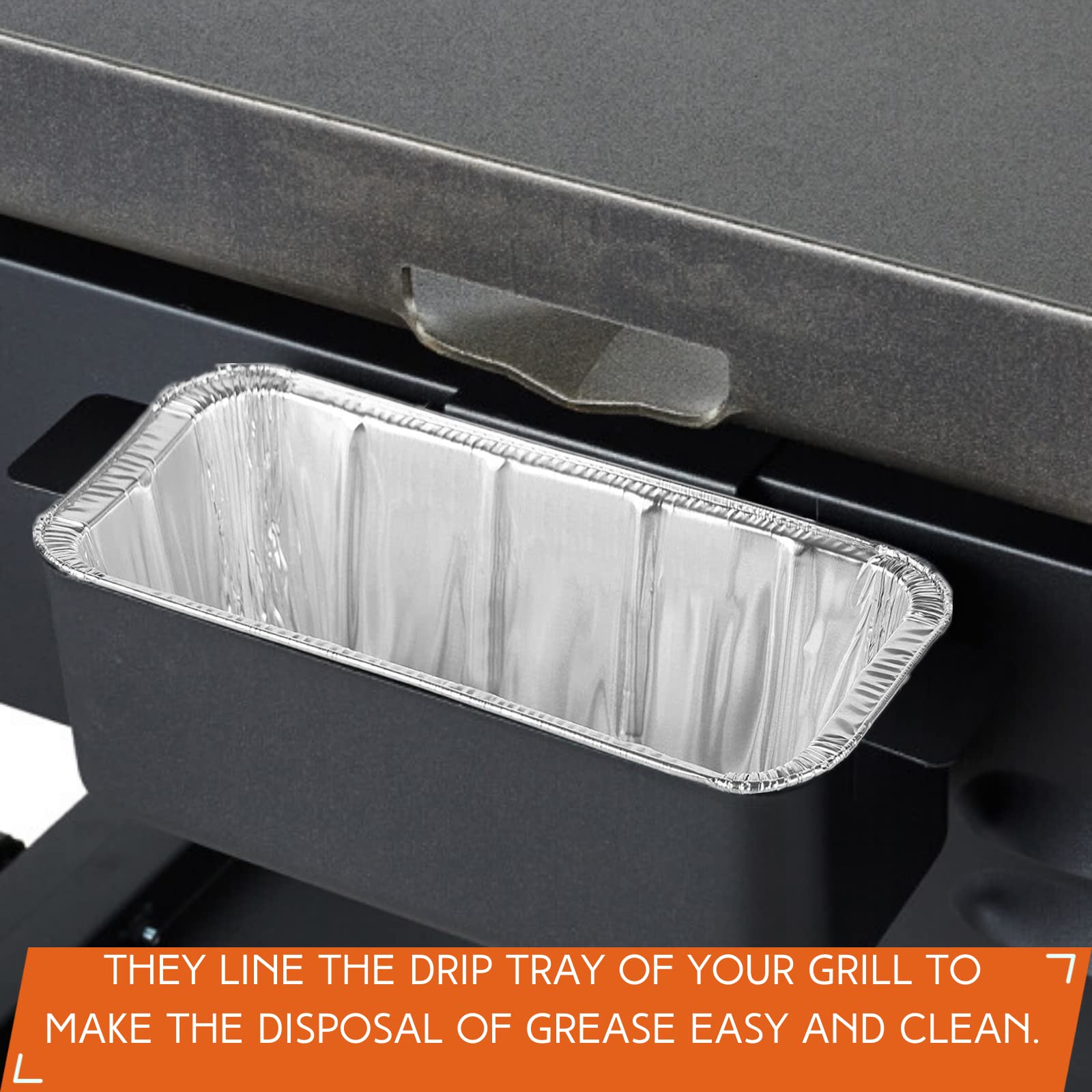 • MULTI-FUNCTIONAL ACCESSORIES - In addition to helping you catch excess grease, grill drip pans can also be used to store food or bake cakes.Used for large gatherings, picnics, vacations, parties. Disposable food containers help us save a lot of time to complete other work.