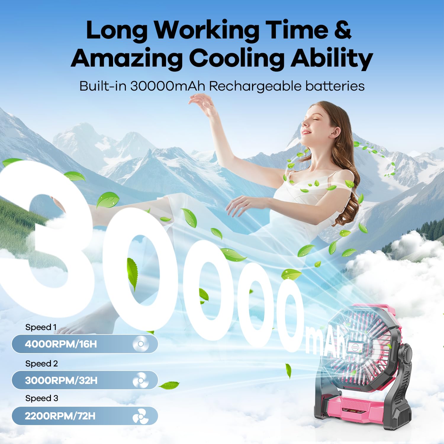 • 🌞30000mAh High-Capacity Battery🌞 - Say goodbye to low-quality camping fans! Our solar fan is equipped with a 10400mAh rechargeable battery, providing 16-48 hours of continuous cooling. It also supports working while charging, ensuring uninterrupted comfort.