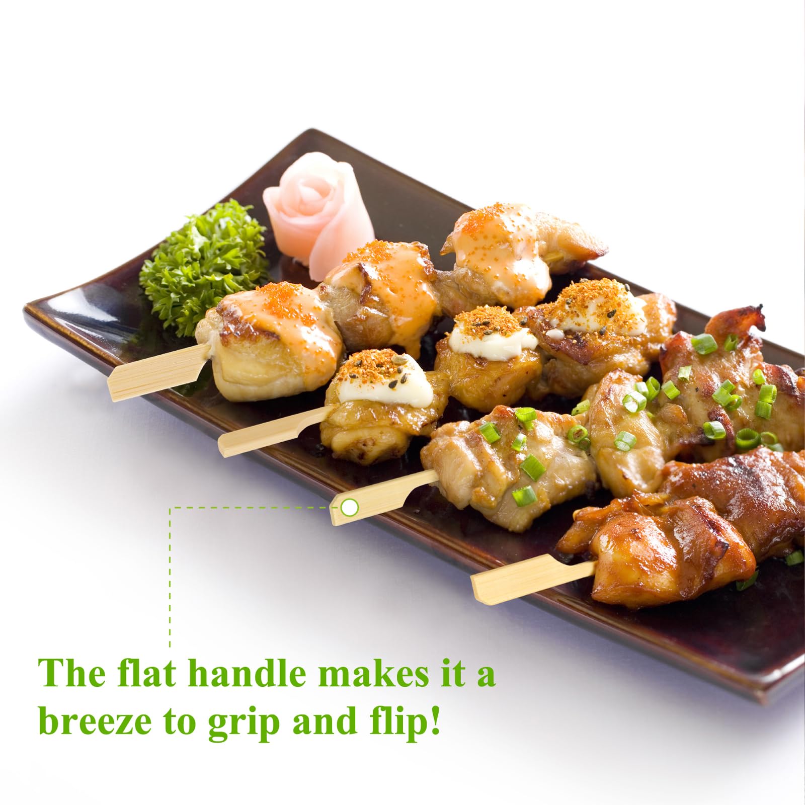 • MORE ERGONOMIC DESIGN: Our wooden skewers feature a flat skewer shape with paddle-like designs at the top for easy gripping, and a square wood skewer shape to prevent food from spinning as it rotates. Compared to ordinary toothpicks, this design is not only aesthetically pleasing, but also practical, making it easier for you and your guests to use cocktail skewers while enjoying delicious food.