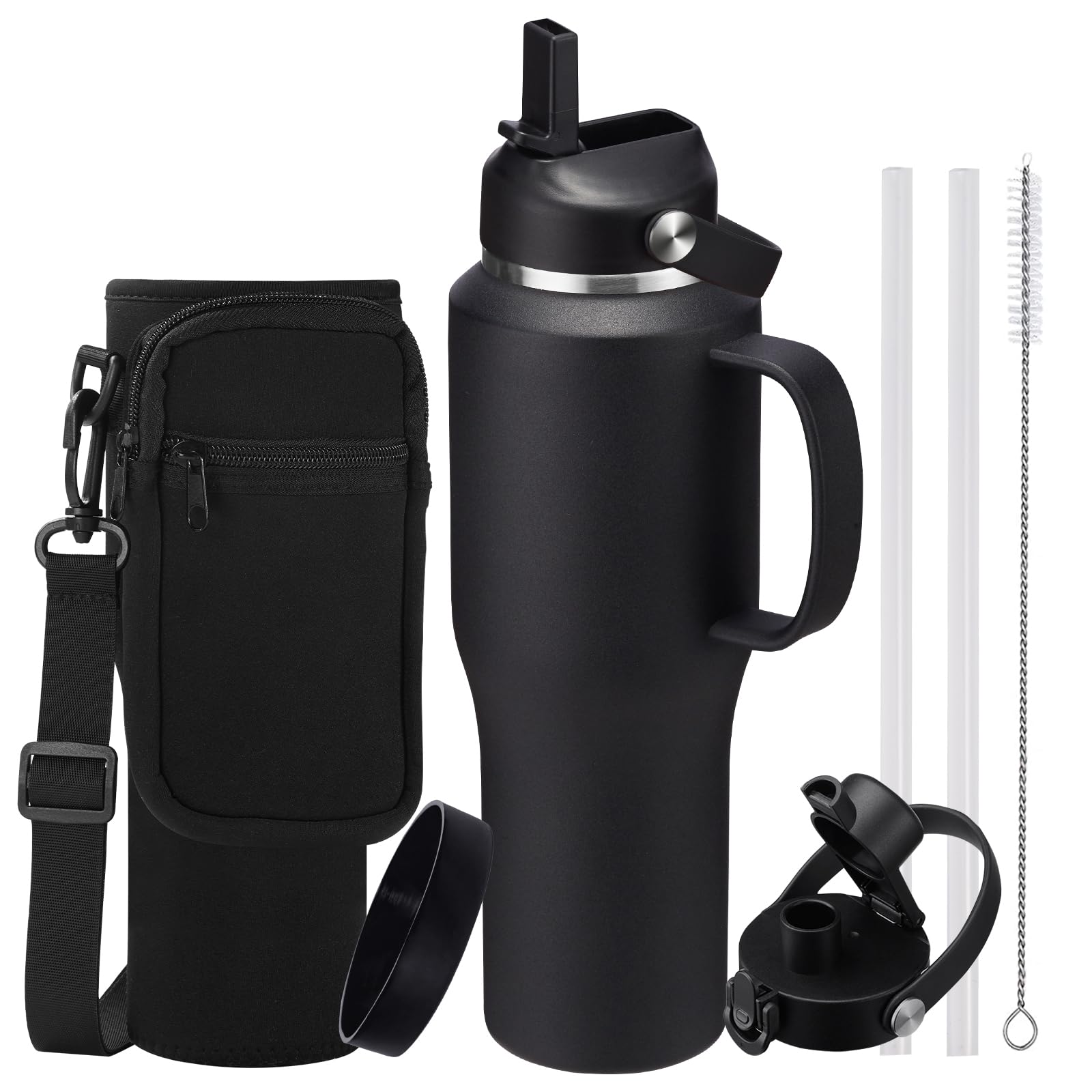 • √ SUPER COMBO & GLAMOROUS GIFT: Buy 32oz insulated tumbler with handle, get 8 accessories (1 x straw lid, 1 x auto spout lid, 1 x bottle holder carrier, 1 x shoulder strap, 1 x protective cup boot, 2 x straws, 1 x straw brush).