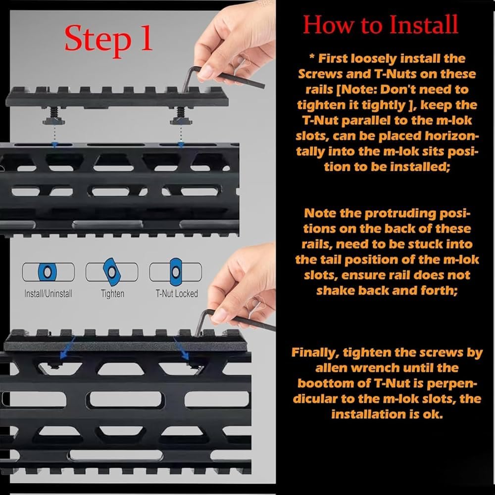 • Picatinny accessory rail sections for M-LOK systems, Ideal for attaching lights, laser, optics, bipods, and grips