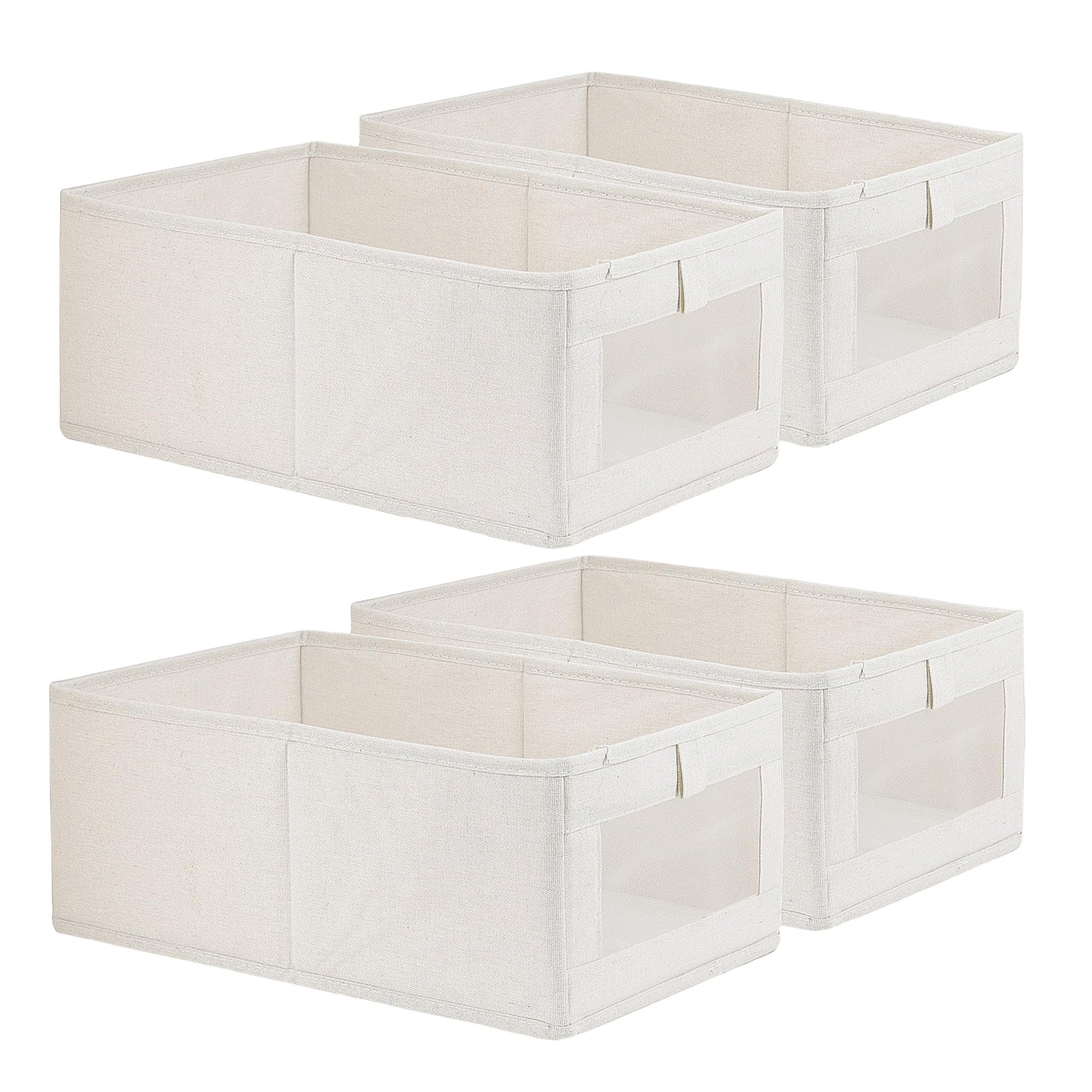 4 Pack Linen Storage Bins, Storage Containers for Organizing Clothing, Jeans, Toys, Books, Shelves, Closet, Wardrobe - Closet Organizers and Storage, Large Storage Boxes Baskets with Window