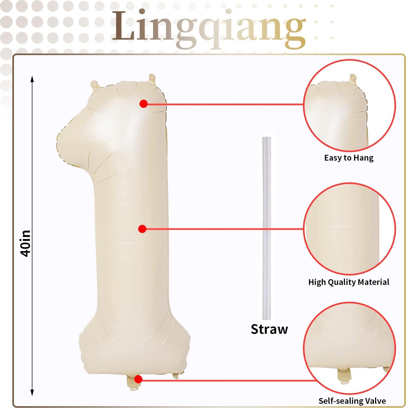 • πŸŽ‰ Beige Number 1 Balloon πŸŽ‰ - You will get 1pc 40 inch mylar foil number 1 balloon and 1pc straw. Perfect for 1st 10th 12th 13th 15th 16th 17th 18th 21st birthday or anniversary party decorations supplies.
