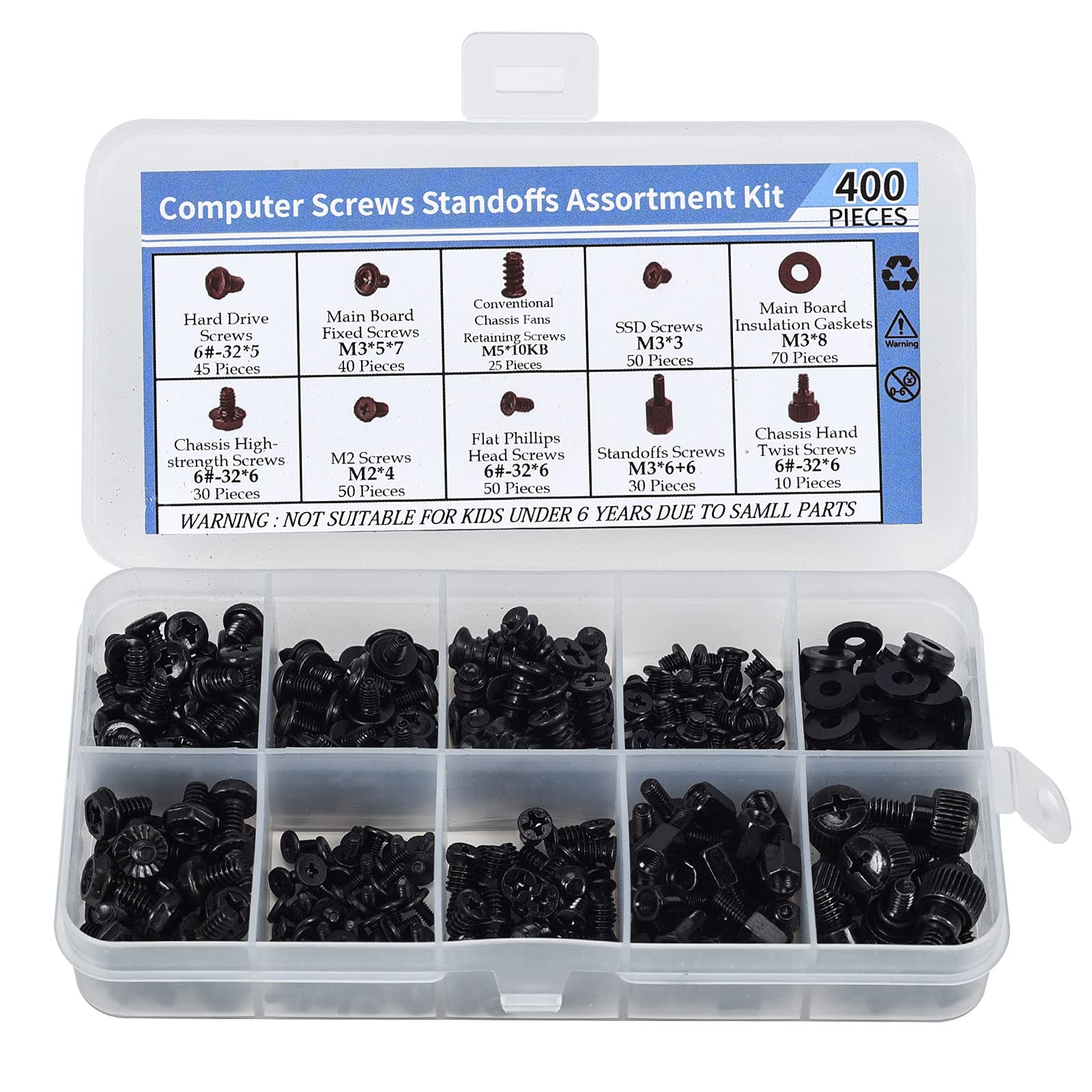 • Total 10 different computer screws with 400Pcs in high quality. Different screw can meet your different needs.