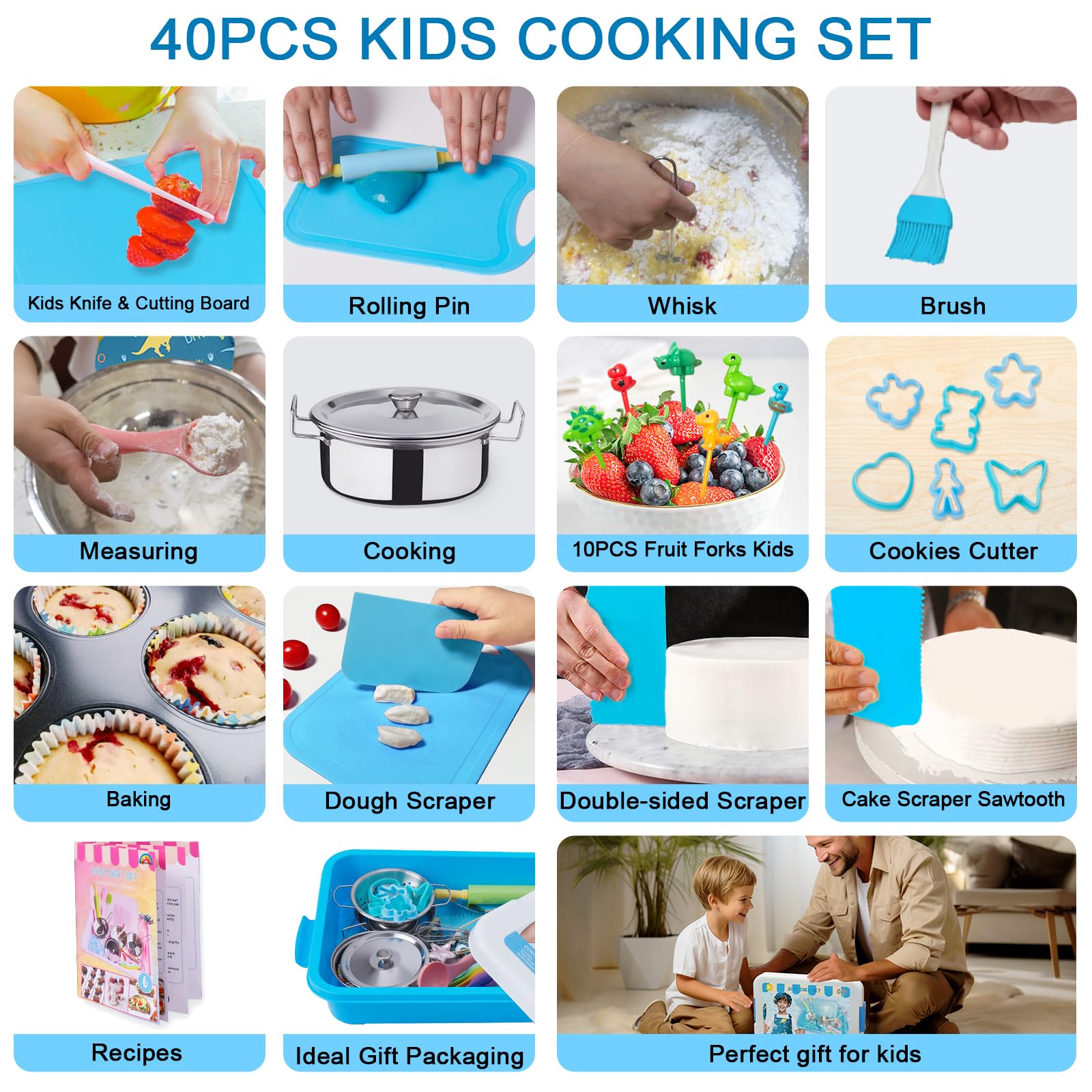 42-Piece Kids Cooking Set - Real Knife, Baking Set, Pots & Pans, Pretend Play Toys - Apron & Chef Hat for Boys
