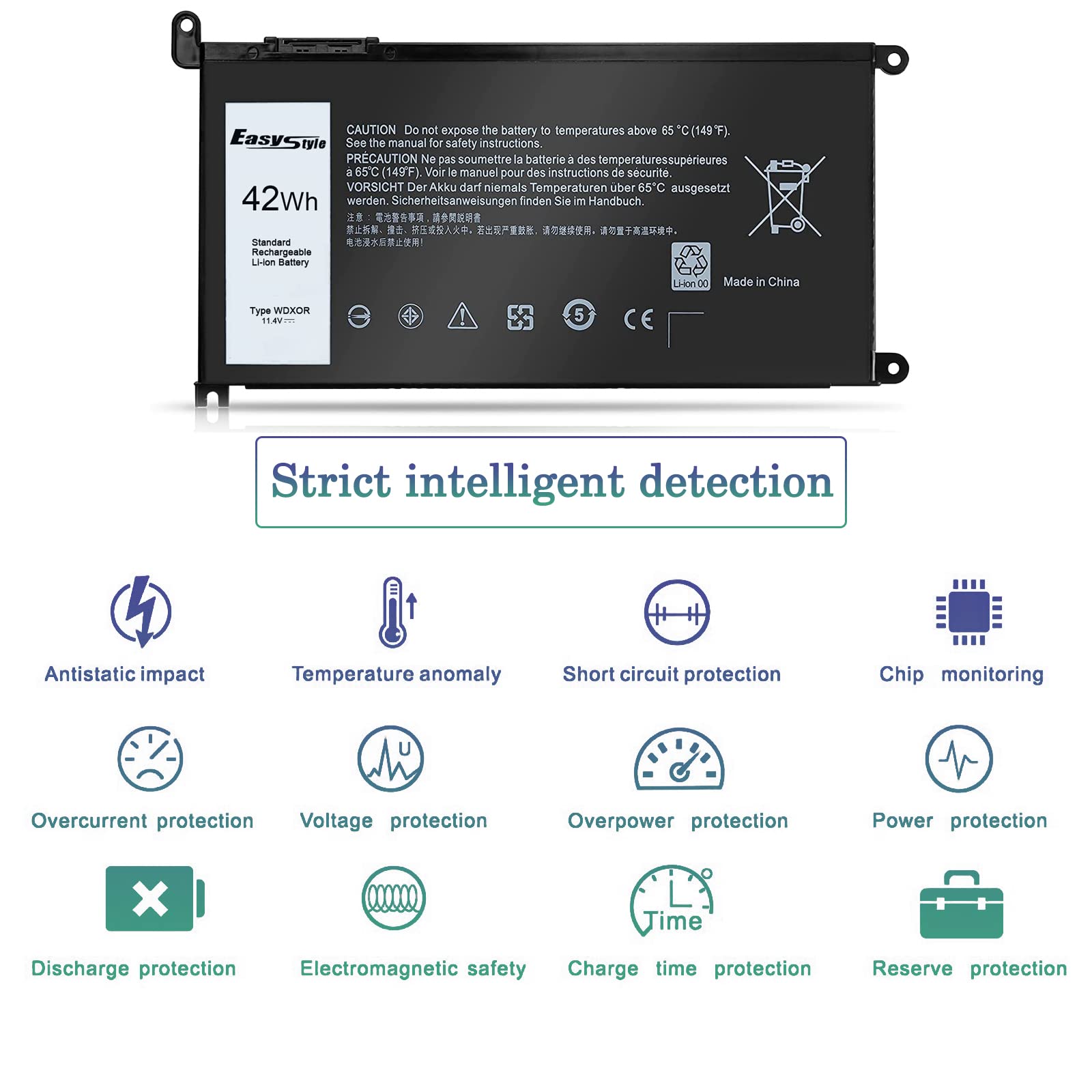• 【GUARANTEE】Our Dell WDXOR WDX0R Replacement Laptop Battery is 100% Compatibility with the originals. Complying with the CE/FCC/ROHS Certified Standard